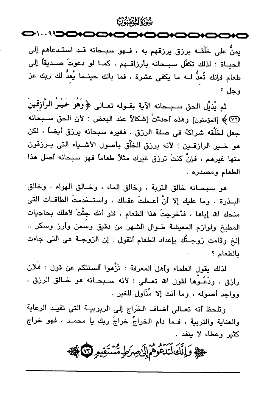 ثم يُذيِّل الحق سبحانه الآية بقوله تعالى {وَهُوَ خَيْرُ الرازقين} [المؤمنون: 72] وهذه أحدثتْ إشكالاً عند البعض؛ لأن الحق سبحانه جعل لخَلْقه شراكة في صفة الرزق، فغيره سبحانه يرزق أيضاً، لكن هو خير الرازقين؛ لأنه يرزق الخَلْق بأصول الأشياء التي يرزقون منها غيرهم، فإنْ كنتَ ترزق غيرك مثلاً طعاماً فهو سبحانه أصل هذا الطعام ومصدره.