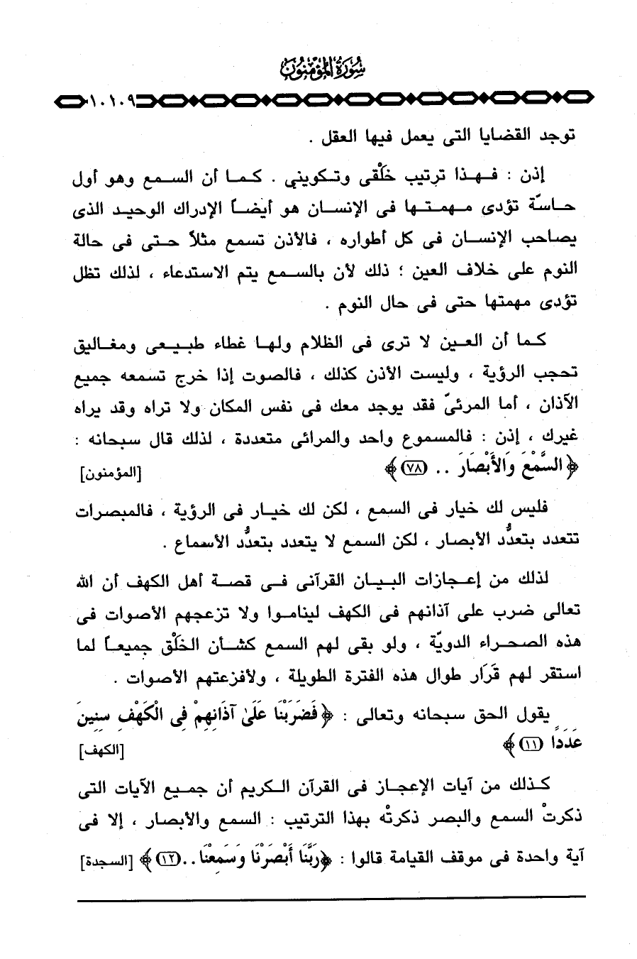 فليس لك خيار في السمع، لكن لك خيار في الرؤية، فالمبصرات تتعدد بتعدُّد الأبصار، لكن السمع لا يتعدد بتعدُّد الأسماع.