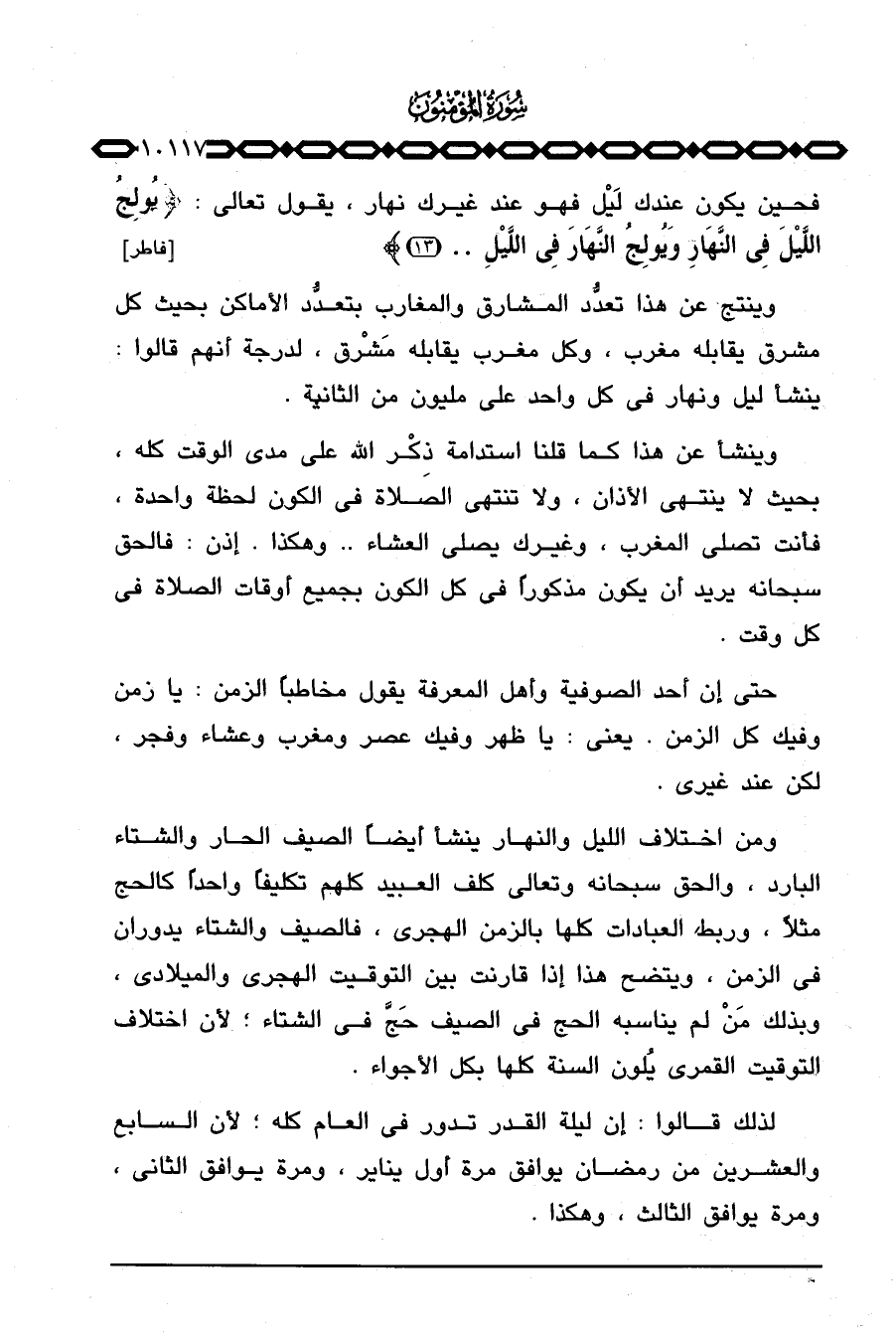 حتى إن أحد الصوفية وأهل المعرفة يقول مخاطباً الزمن: يا زمن وفيك كل الزمن. يعني: يا ظهر وفيك عصر ومغرب وعشاء وفجر، لكن عند غيري.