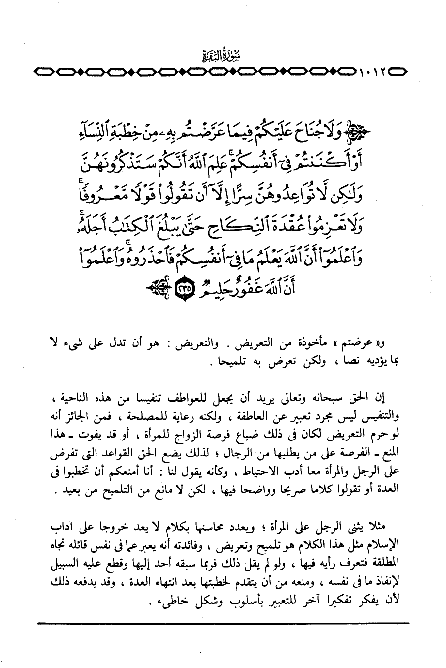 {وَلاَ جُنَاحَ عَلَيْكُمْ فِيمَا عَرَّضْتُمْ بِهِ مِنْ خِطْبَةِ النسآء ... }