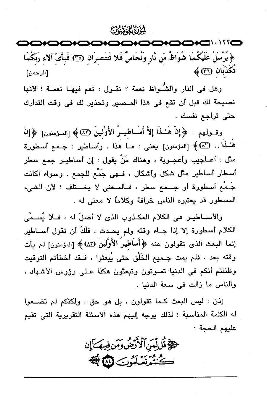 وقولهم: {إِنْ هاذآ إِلاَّ أَسَاطِيرُ الأولين} [المؤمنون: 83] {إِنْ هاذآ. .} [المؤمنون: 83] يعني: ما هذا. وأساطير جمع أسطورة مثل: أعاجيب وأعجوبة، هناك مَنْ يقول: إن أساطير جمع سطر أسطار أساطير مثل شكل وأشكال، فهي جَمْع للجمع. وسواء أكانت جَمْع أسطورة أو جمع سطر، فالمعنى لا يختلف؛ لأن الشيء المسطور قد يعتبره الناس خرافة وكلاماً لا معنى له.