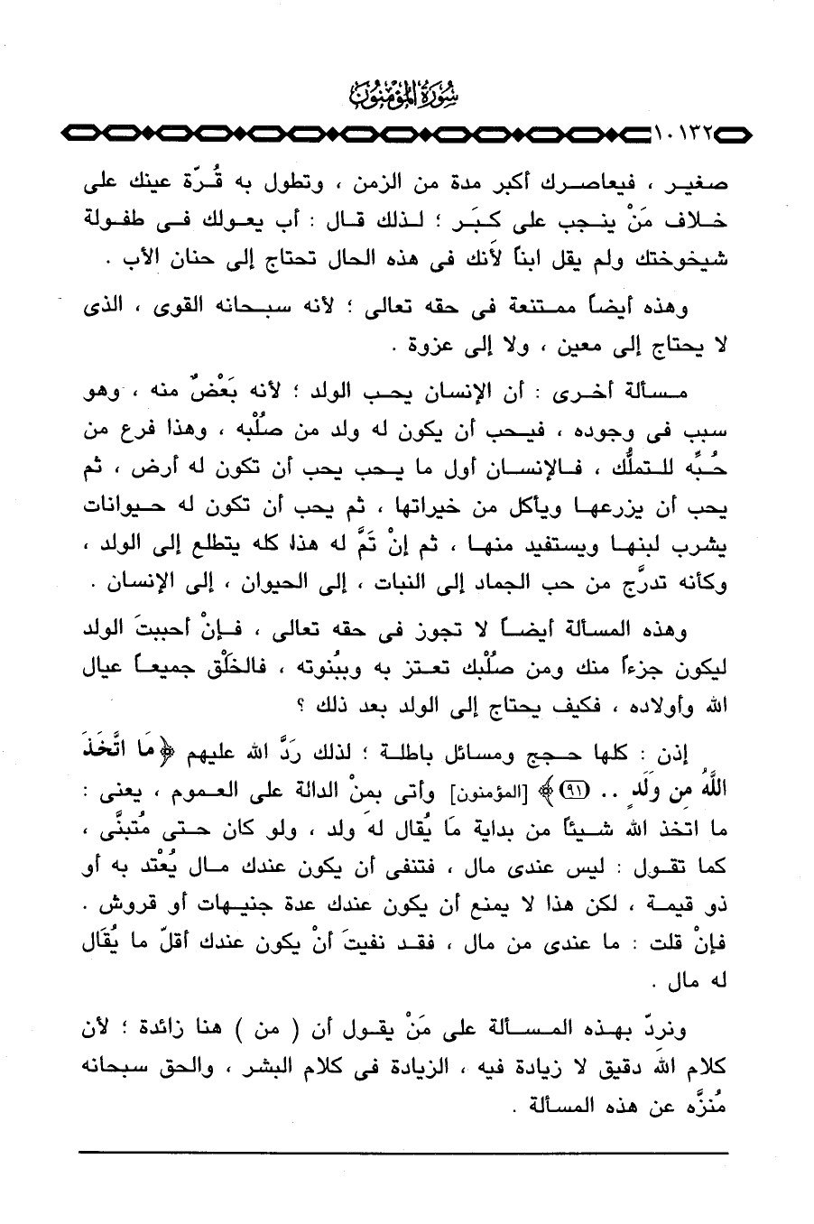 وهذه المسألة أيضاً لا تجوز في حقه تعالى، فإنْ أحببتَ الولد ليكون جزءاً منك ومن صُلْبك تعتز به وببُنوته، فالخَلْق جميعاً عيال الله وأولاده، فكيف يحتاج إلى الولد بعد ذلك؟