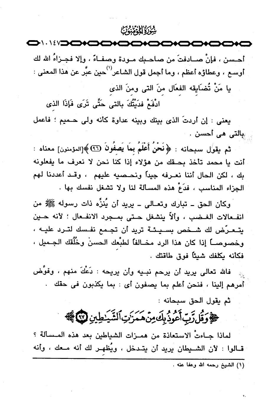 لماذا جاءتْ الاستعاذة من همزات الشياطين بعد هذه المسألة؟ قالوا: لأن الشيطان يريد أن يتدخل، ويُظهِر لك أنه معك، وأنه