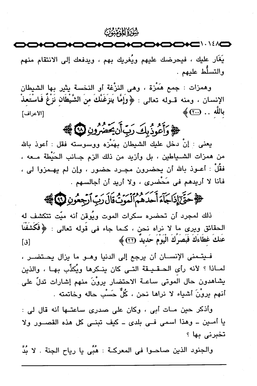 يعني: إنْ دخل عليك الشيطان بهَمْزه ووسوسته فقل: أعوذ بالله من همزات الشياطين، بل وأزيد من ذلك الزم جانب الحَيْطة معه، فقُلْ: أعوذ بالله أن يحضرون مجرد حضور، وإن لم يهمزوا لي، فأنا لا أريدهم في مَحْضري، ولا أريد أن أجالسهم.