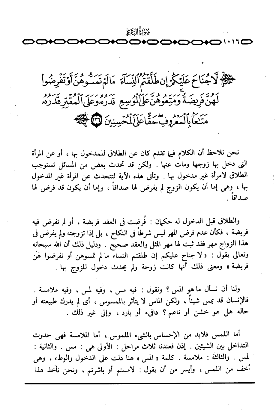 {لاَّ جُنَاحَ عَلَيْكُمْ إِن طَلَّقْتُمُ النسآء مَا لَمْ تَمَسُّوهُنَّ أَوْ تَفْرِضُواْ لَهُنَّ فَرِيضَةً ... }