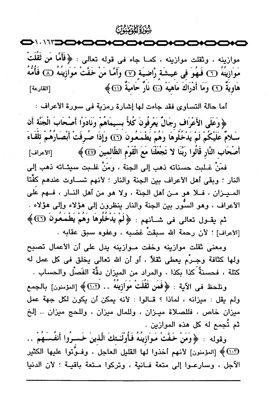 ونلحظ في الآية: {فَمَن ثَقُلَتْ مَوَازِينُهُ. .} [المؤمنون: 102] بالجمع ولم يقل: ميزانه، لماذا؟ قالوا: لأنه يمكن أن يكون لكل جهة عمل ميزان خاص، فللصلاة ميزان، وللمال ميزان، وللحج ميزان. . إلخ ثم تُجمع له كل هذه الموازين.