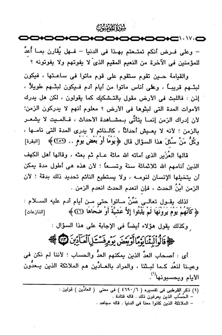 والقيامة حين تقوم ستقوم على قوم ماتوا في ساعتها، فيكون لبثهم قريباً، وعلى أناس ماتوا من أيام آدم فيكون لبثهم طويلاً، إذن: فاللبث في الأرض مقول بالتشكيك كما يقولون، لكن هل يدرك الأموات المدة التي لبثوها في الأرض؟ معلوم أنهم لا يدركون الزمن؛ لأن إدراك الزمن إنما يتأتَّى بمشاهدة الأحداث، فالميت لا يشعر بالزمن؛ لأنه لا يعيش أحداثاً، كالنائم لا يدري المدة التي نامها، وكُلُّ مَنْ سُئِلَ هذا السؤال قال {يَوْماً أَوْ بَعْضَ. .} [البقرة: 259] .