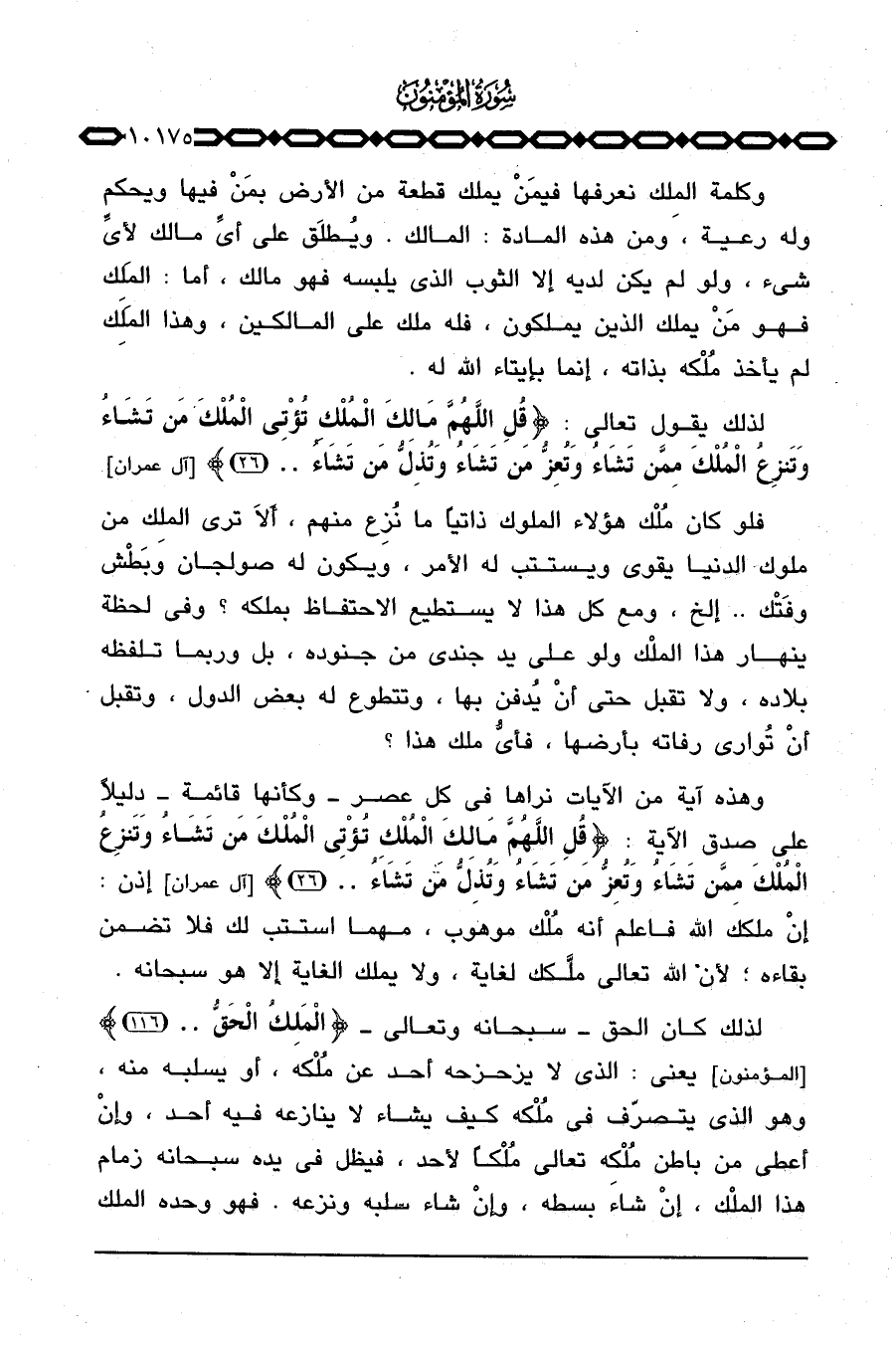 فلو كان مُلْك هؤلاء الملوك ذاتياً ما نُزِع منهم، أَلاَ ترى الملِك من ملوك الدنيا يقوي ويستتب له الأمر، ويكون له صولجان وبَطْش وفَتْك. . إلخ، ومع كل هذا لا يستطيع الاحتفاظ بملكه؟ وفي لحظة ينهار هذا الملْك ولو على يد جندي من جنوده، بل وربما تلفظه بلاده، ولا تقبل حتى أنْ يُدفن بها، وتتطوع له بعض الدول، وتقبل أنْ تُواري رفاته بأرضها، فأيُّ ملك هذا؟