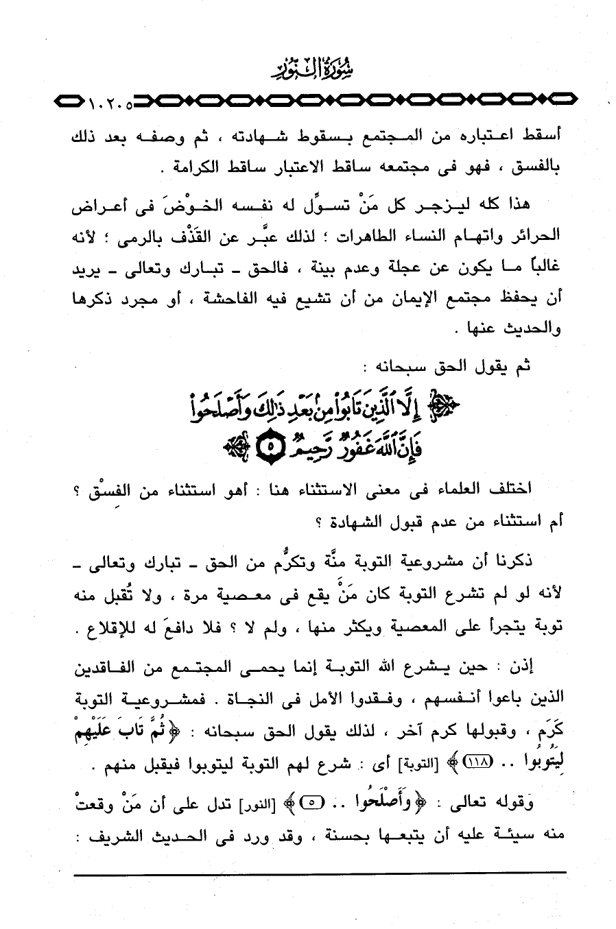 وقوله تعالى: {وَأَصْلَحُواْ. .} [النور: 5] تدل على أن مَنْ وقعتْ منه سيئة عليه أن يتبعها بحسنة، وقد ورد في الحديث الشريف: «