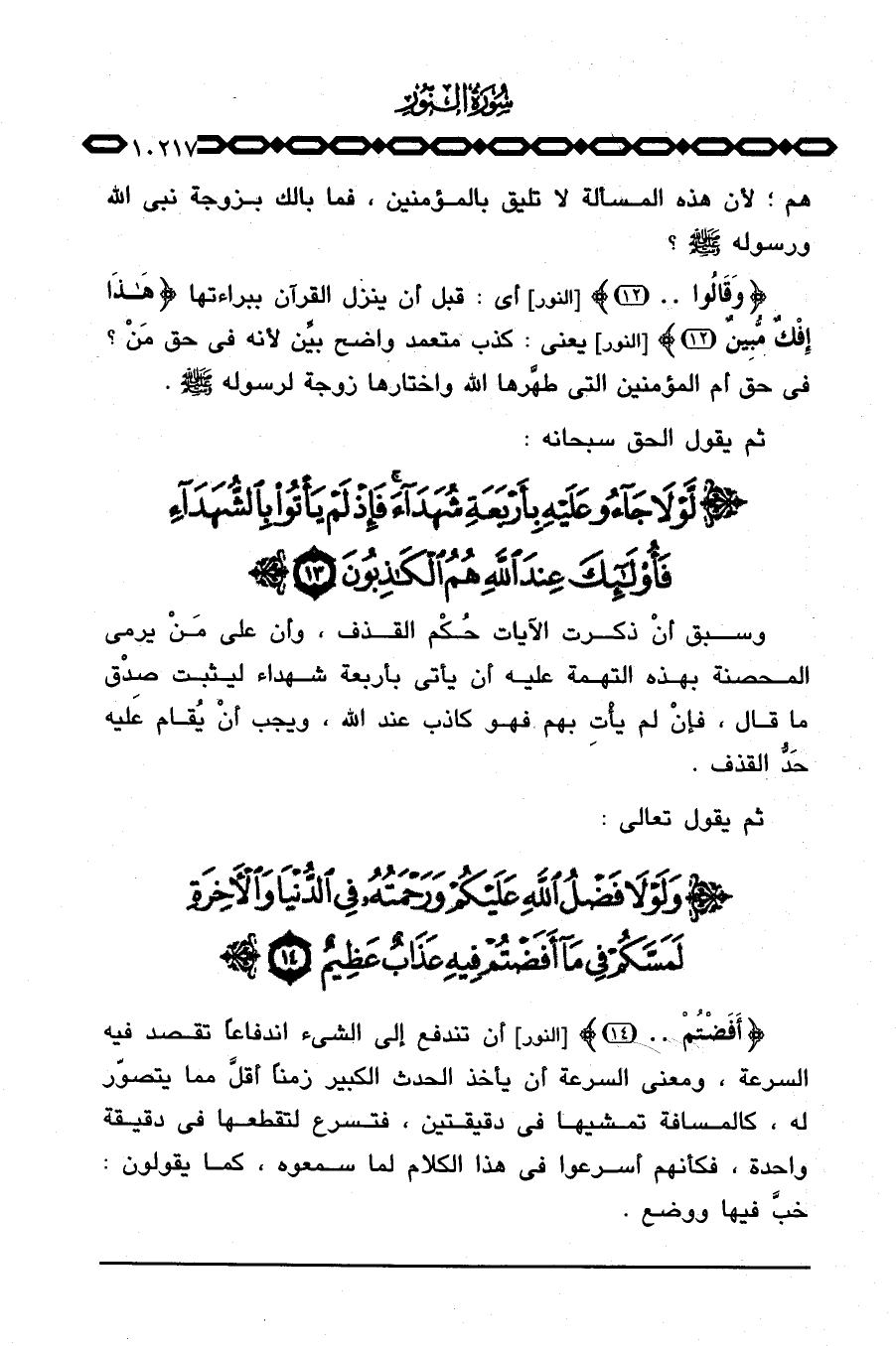 وسبق أنْ ذكرت الآيات حُكْم القذف، وأن على مَنْ يرمي المحصنة بهذه التهمة عليه أن يأتي بأربعة شهداء ليثبت صِدْق ما قال، فإنْ لم يأْتِ بهم فهو كاذب عند الله، ويجب أنْ يُقام عليه حَدُّ القذف.