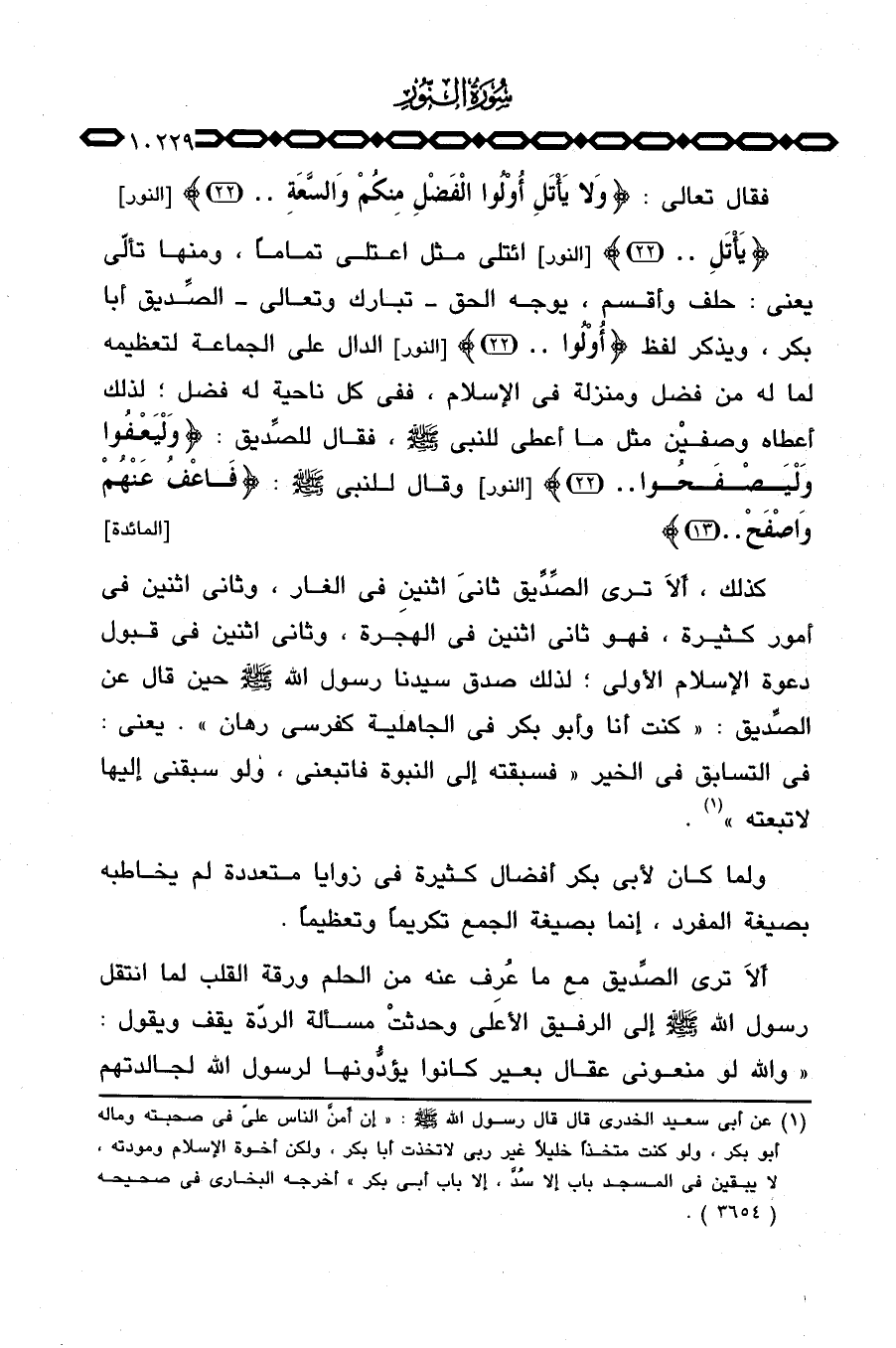 {يَأْتَلِ. .} [النور: 22] ائتلى مثل اعتلى تماماً، ومنها تألّى يعني: حلف وأقسم، يوجه الحق - تبارك وتعالى - الصِّديق أبا بكر، ويذكر لفظ {أُوْلُواْ. .} [النور: 22] الدال على الجماعة لتعظيمه لما له من فضل ومنزلة في الإسلام، ففي كل ناحية له فضل؛ لذلك أعطاه وصفيْن مثل ما أعطى للنبي صَلَّى اللَّهُ عَلَيْهِ وَسَلَّم َ، فقال للصِّديق: {وَلْيَعْفُواْ وليصفحوا. .} [النور: 22] وقال للنبي صَلَّى اللَّهُ عَلَيْهِ وَسَلَّم َ: {فاعف عَنْهُمْ واصفح. .} [المائدة: 13] .