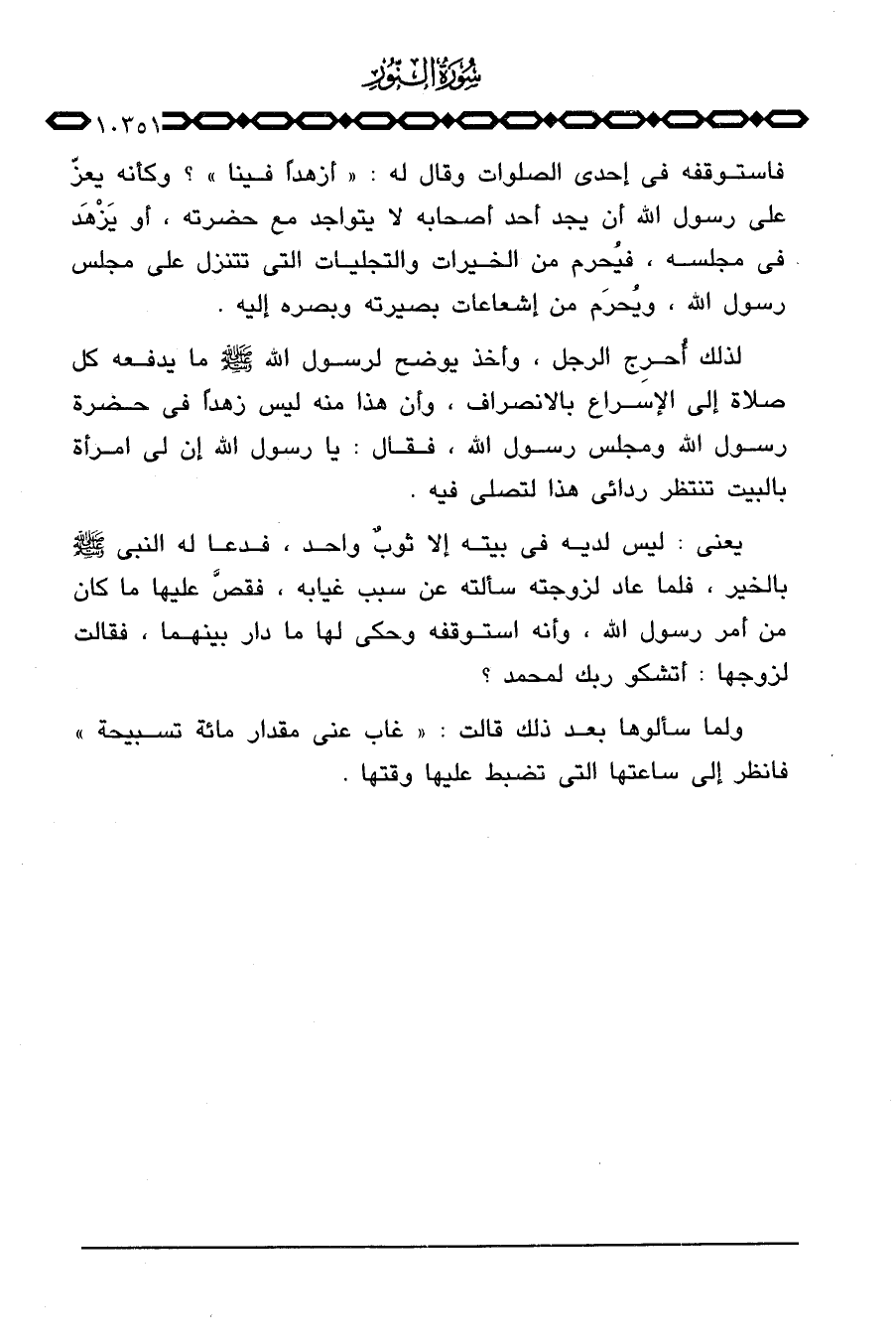 لذلك أُحرِج الرجل، وأخذ يوضح لرسول الله صَلَّى اللَّهُ عَلَيْهِ وَسَلَّم َ ما يدفعه كل صلاة إلى الإسراع بالانصراف، وأن هذا منه ليس زهداً في حضرة رسول الله ومجلس رسول الله، فقال: يا رسول الله إن لي امرأة بالبيت تنتظر ردائي هذا لتصلي فيه.