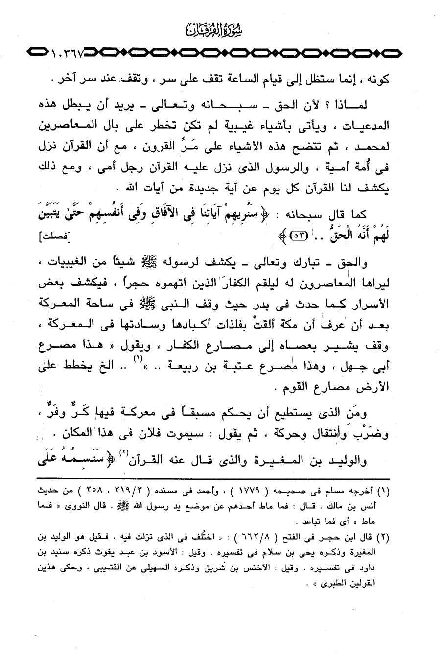 والحق تبارك وتعالى يكشف لرسوله صَلَّى اللَّهُ عَلَيْهِ وَسَلَّم َ شيئاً من الغيبيات، ليراها المعاصرون له ليلقم الكفارَ الذين اتهموه حجراً، فيكشف بعض الأسرار كما حدث في بدر حيث وقف النبي صَلَّى اللَّهُ عَلَيْهِ وَسَلَّم َ في ساحة المعركة بعد أن عرف أن مكة ألقتْ بفلذات أكبادها وسادتها في المعركة، وقف يشير بعصاه إلى مصارع الكفار، ويقول: «هذا مصرع أبي جهل، وهذا مصرع عتبة بن ربيعة. .» . الخ يخطط على الأرض مصارع القوم.