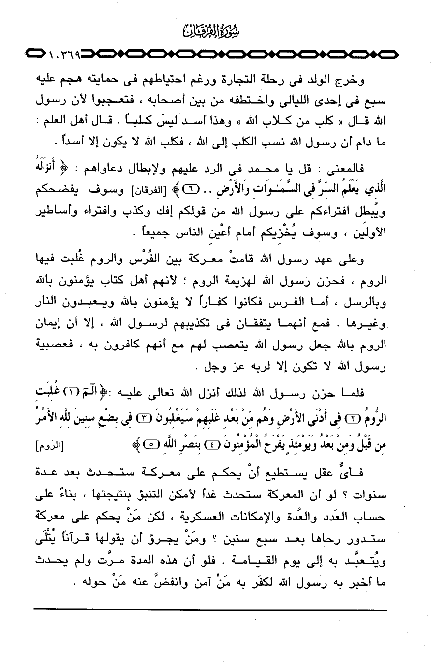 فأيُّ عقل يستطيع أنْ يحكم على معركة ستحدث بعد عدة سنوات؟ لو أن المعركة ستحدث غداً لأمكن التنبؤ بنتيجتها، بناءً على حساب العَدد والعُدة والإمكانات العسكرية، لكن مَنْ يحكم على معركة ستدور رحاها بعد سبع سنين؟ ومَنْ يجرؤ أن يقولها قرآناً يُتْلَى ويُتعبَّد به إلى يوم القيامة. فلو أن هذه المدة مرَّت ولم يحدث ما أخبر به رسول الله لكفَر به مَنْ آمن وانفضَّ عنه مَنْ حوله.
