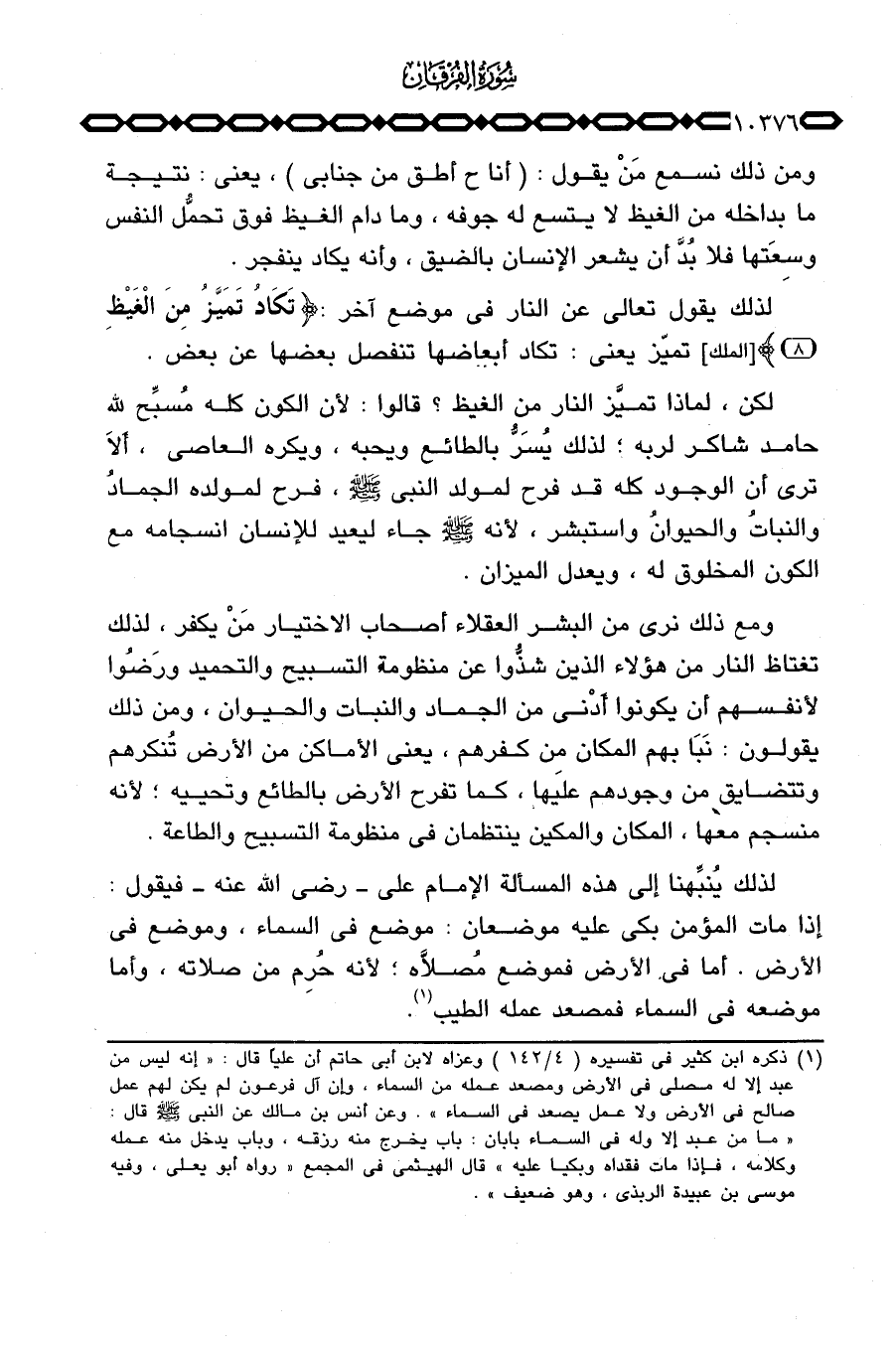 ومع ذلك نرى من البشر العقلاء أصحاب الاختيار مَنْ يكفر، لذلك تغتاظ النار من هؤلاء الذي شذُّوا عن منظومة التسبيح والتحميد ورَضُوا لأنفسهم أن يكونوا أَدْنى من الجماد والنبات والحيوان، ومن ذلك يقولون: نَبَا بهم المكان من كفرهم، يعني الأماكن من الأرض تُنكرهم وتتضايق من وجودهم عليها، كما تفرح الأرض بالطائع وتحييه؛ لأنه منسجم معها، المكان والمكين ينتظمان في منظومة التسبيح والطاعة.