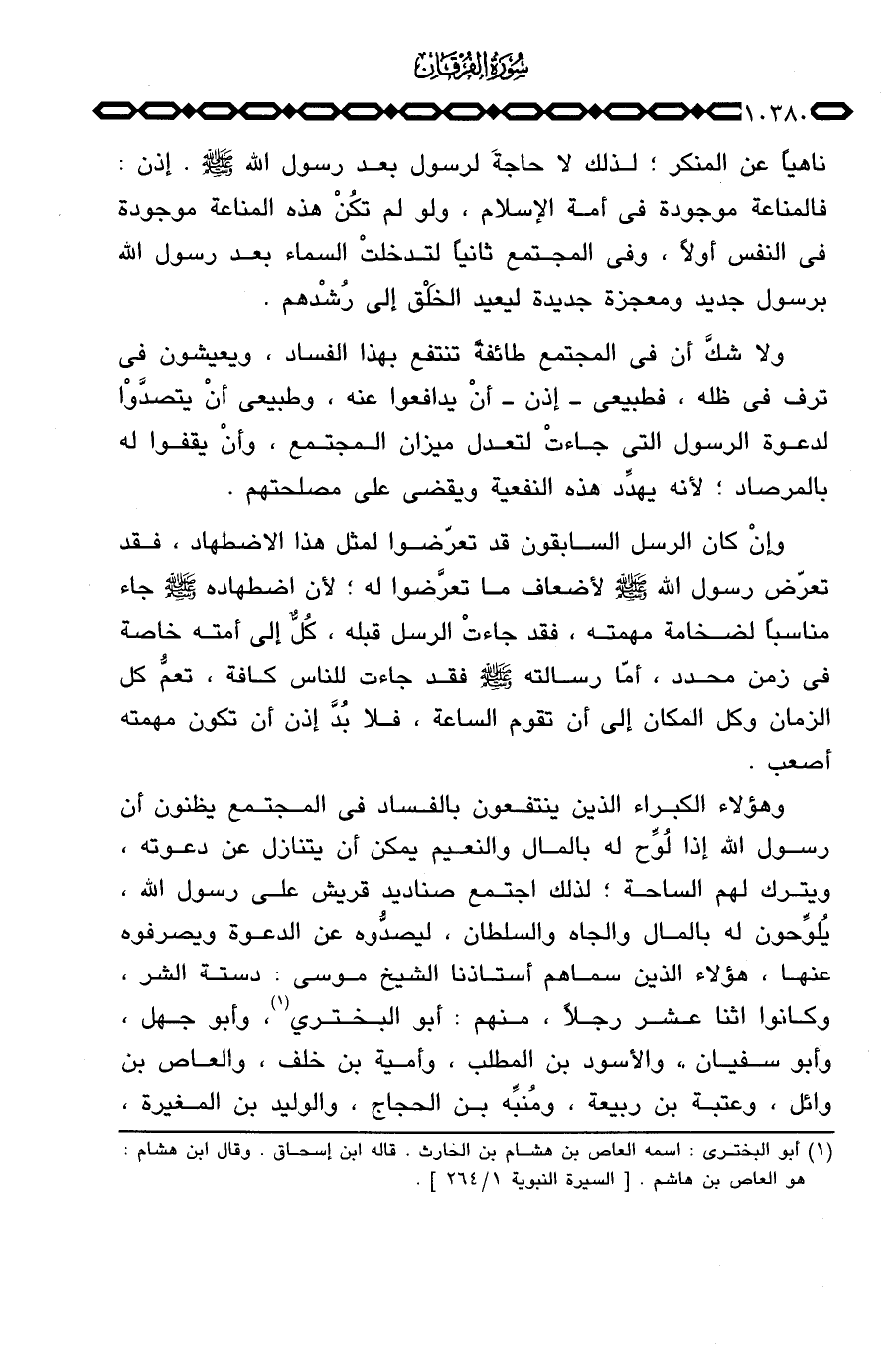 ولا شكَّ أن في المجتمع طائفةً تنتفع بهذا الفساد، ويعيشون في ترف في ظله، فطبيعي إذن أنْ يدافعوا عنه، وطبيعي أنْ يتصدَّوْا لدعوة الرسول التي جاءتْ لتعدل ميزان المجتمع، وأنْ يقفوا له بالمرصاد؛ لأنه يهدِّد هذه النفعية ويقضي على مصلحتهم.