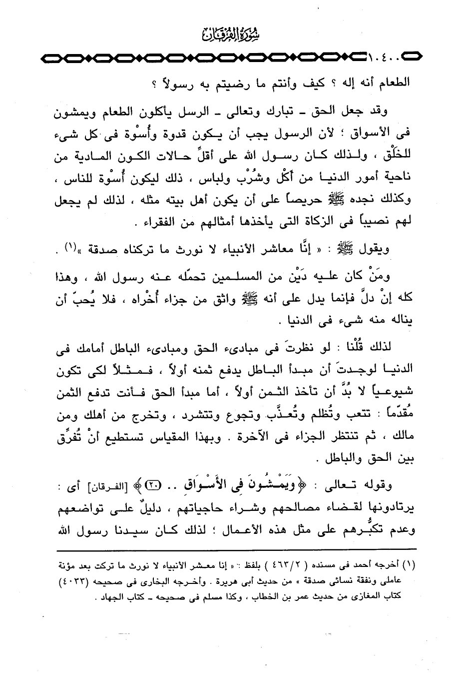 ويقول صَلَّى اللَّهُ عَلَيْهِ وَسَلَّم َ: «إنَّا معاشر الأنبياء لا نورث ما تركناه صدقة» .