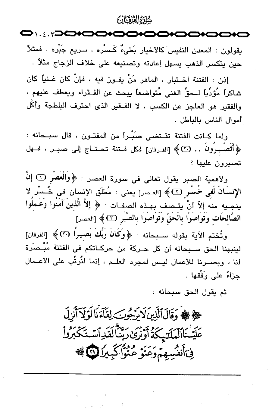 ولما كانت الفتنة تقتضي صَبْراً من المفتون، قال سبحانه: {أَتَصْبِرُونَ} [الفرقان: 20] فكل فتنة تحتاج إلى صبر، فهل تصبرون عليها؟