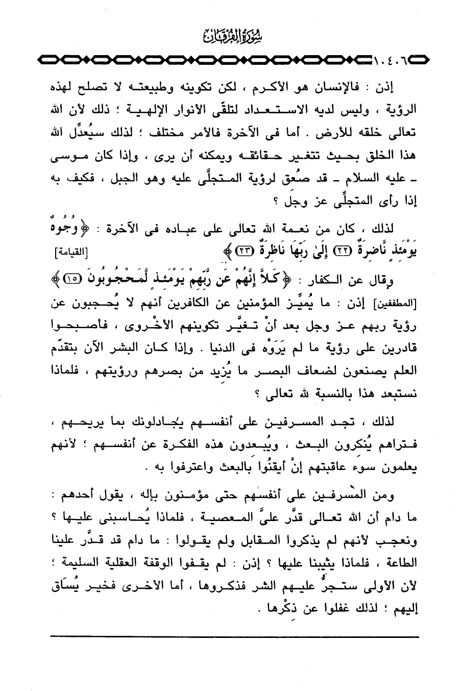 إذن: فالإنسان هو الأكرم، لكن تكوينه وطبيعته لا تصلح لهذه الرؤية، وليس لديه الاستعداد لتلقّي الأنوار الإلهية؛ ذلك لأن الله تعالى خلقه للأرض. أما في الآخرة فالأمر مختلف؛ لذلك سيُعدِّل الله هذا الخلق بحيث تتغير حقائقه ويمكنه أن يرى، وإذا كان موسى عليه السلام قد صُعِق لرؤية المتجلَّى عليه وهو الجبل، فكيف به إذا رأى المتجلِّي عَزَّ وَجَلَّ؟