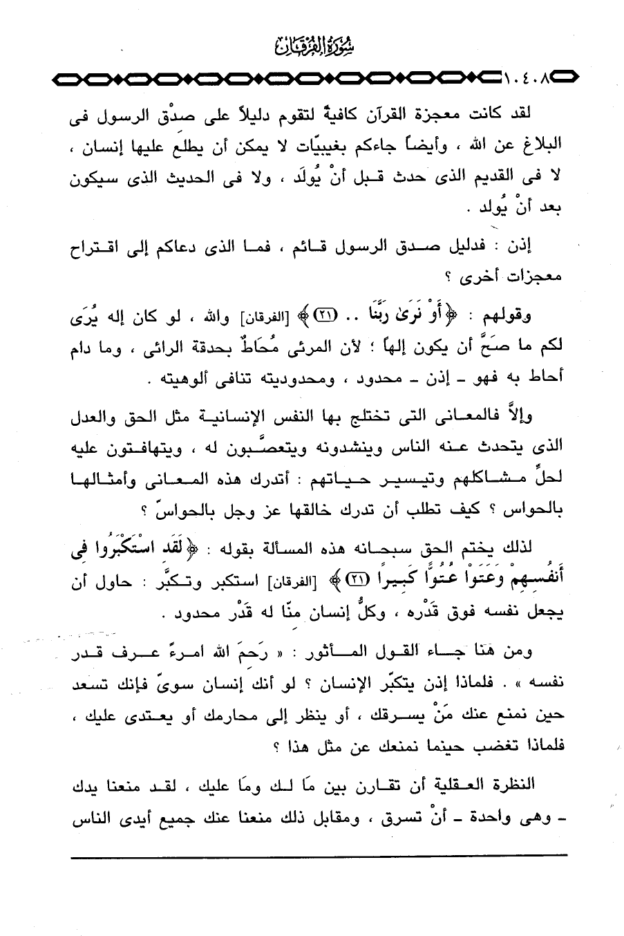 لذلك يختم الحق سبحانه هذه المسألة بقوله: {لَقَدِ استكبروا في أَنفُسِهِمْ وَعَتَوْا عُتُوّاً كَبِيرا} [الفرقان: 21] استكبر وتكبَّر: حاول أن يجعل نفسه فوق قَدْره، وكلُّ إنسان مِنّا له قَدْر محدود.