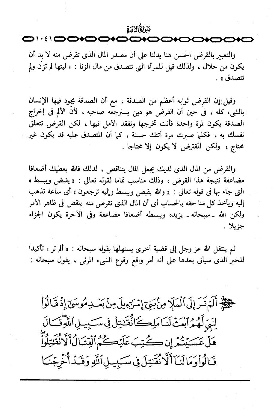 والقرض من المال الذي لديك يجعل المال يتناقص، لذلك فالله يعطيك أضعافا مضاعفة نتيجة هذا القرض، وذلك مناسب تماماً لقوله تعالى: {يَقْبِضُ وَيَبْسُطُ} التي جاء بها في قوله تعالى: {والله يَقْبِضُ وَيَبْسُطُ وَإِلَيْهِ تُرْجَعُونَ} أي ساعة تذهب إليه ويأخذ كل منا حقه بالحساب أي أن المال الذي تقرض منه ينقص في ظاهر الأمر ولكن الله سبحانه يزيده ويبسطه أضعافا مضاعفة وفي الآخرة يكون الجزاء جزيلا.