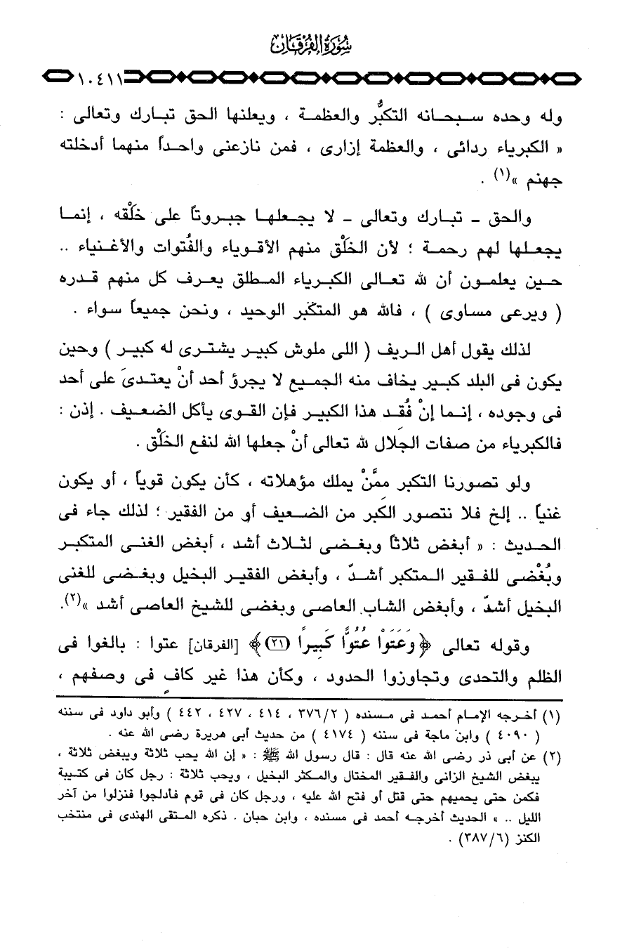 وله وحده سبحانه التكبُّر والعظمة، ويعلنها الحق تبارك وتعالى: «الكبرياء ردائي، والعظمة إزاري، فمن نازعني واحداً منهما أدخلته جهنم» .