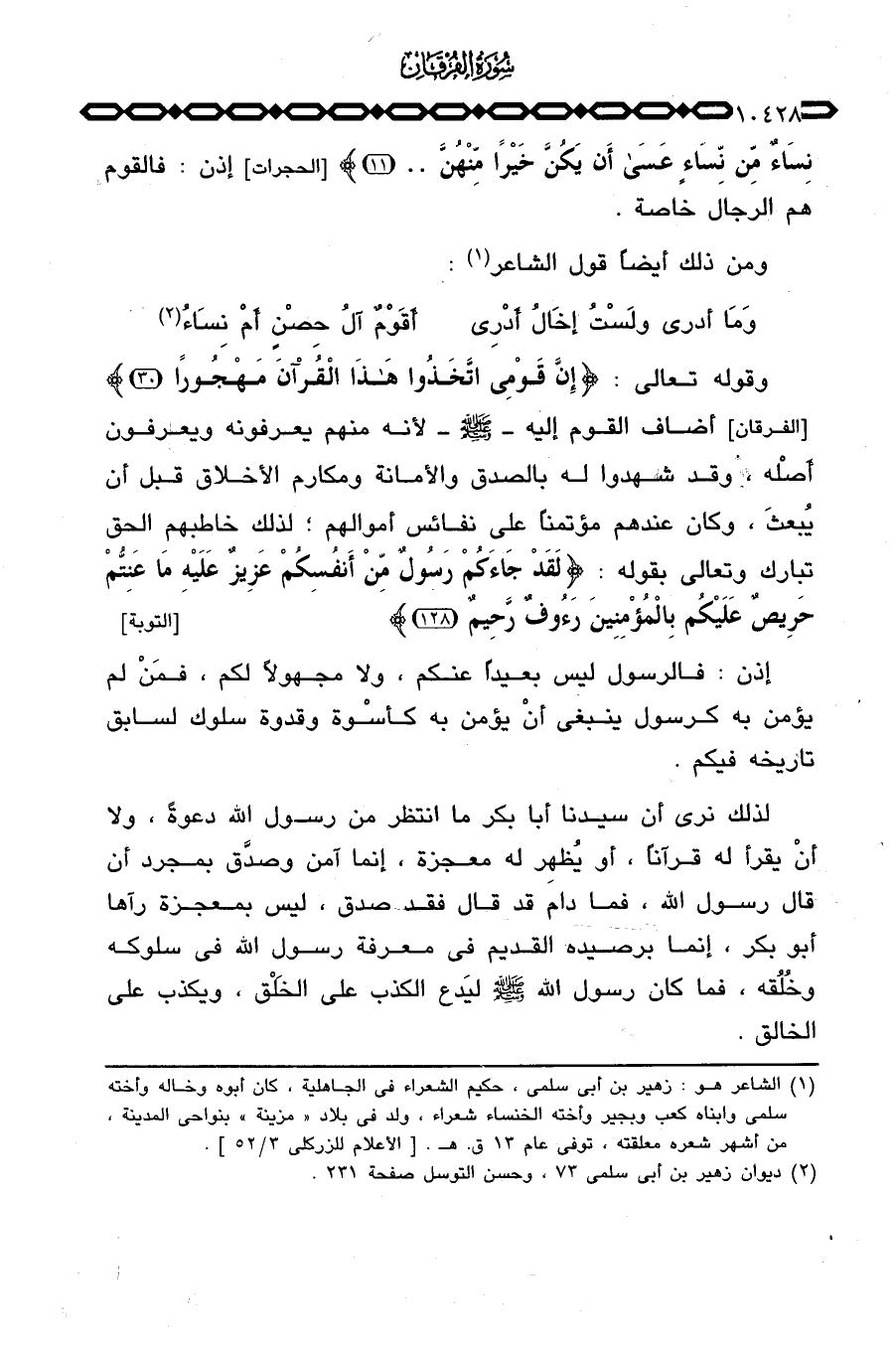 وقوله تعالى: {إِنَّ قَوْمِي اتخذوا هذا القرآن مَهْجُوراً} [الفرقان: 30] أضاف القوم إليه صَلَّى اللَّهُ عَلَيْهِ وَسَلَّم َ لأنه منهم يعرفونه ويعرفون أصْله، وقد شهدوا له بالصدق والأمانة ومكارم الأخلاق قبل أن يُبعثَ، وكان عندهم مؤتمناً على نفائس أموالهم؛ لذل خاطبهم الحق تبارك وتعالى بقوله: {لَقَدْ جَآءَكُمْ رَسُولٌ مِّنْ أَنفُسِكُمْ عَزِيزٌ عَلَيْهِ مَا عَنِتُّمْ حَرِيصٌ عَلَيْكُمْ بالمؤمنين رَءُوفٌ رَّحِيمٌ} [التوبة: 128] .