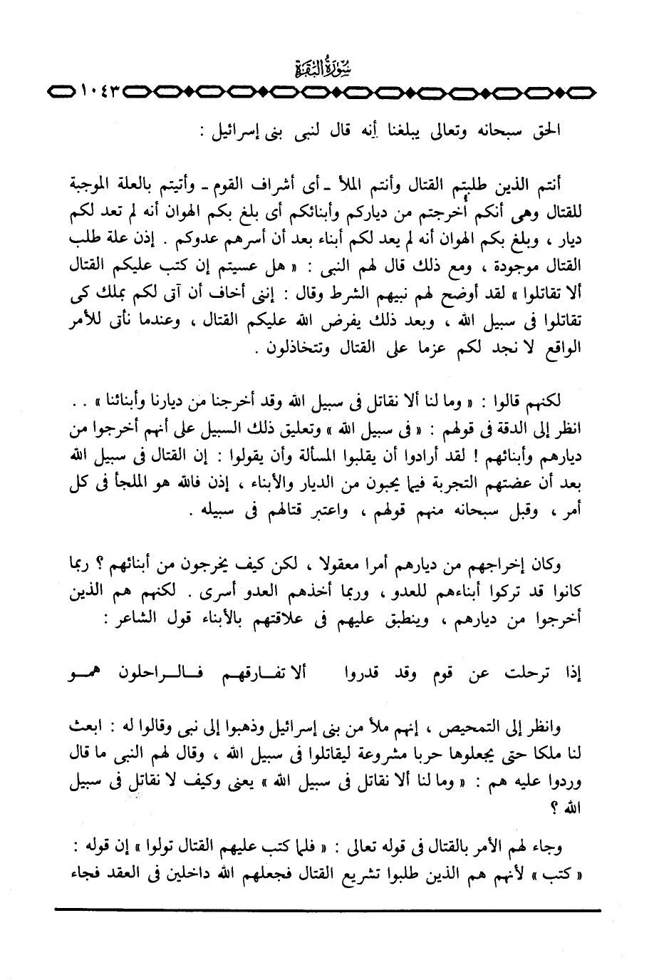 وانظر إلى التمحيص، إنهم ملأ من بني إسرائيل وذهبوا إلى نبي وقالوا له: ابعث لنا ملكا حتى يجعلوها حربا مشروعة ليقاتلوا في سبيل الله، وقال لهم النبي ما قال وردوا عليه هم: {وَمَا لَنَآ أَلاَّ نُقَاتِلَ فِي سَبِيلِ الله} يعني وكيف لا نقاتل في سبيل الله؟