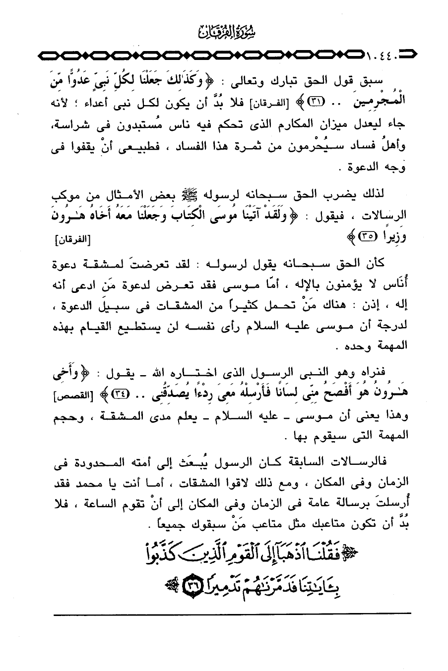 لذلك يضرب الحق سبحانه لرسوله صَلَّى اللَّهُ عَلَيْهِ وَسَلَّم َ بعض الأمثال من موكب الرسالات، فيقول: {وَلَقَدْ آتَيْنَا مُوسَى الكتاب وَجَعَلْنَا مَعَهُ أَخَاهُ هَارُونَ وَزِيراً} [الفرقان: 35] .