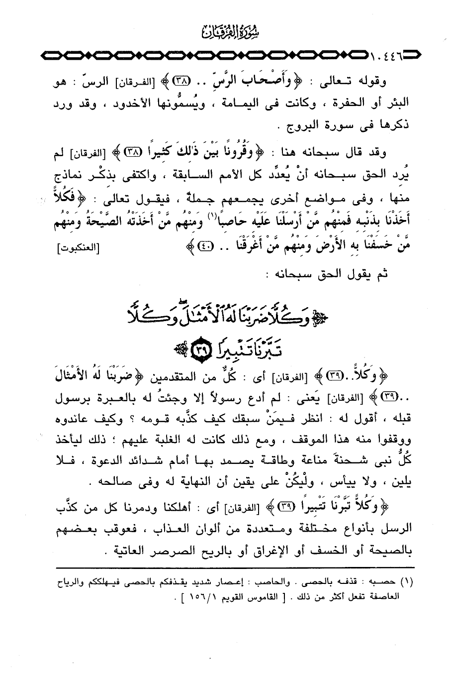 {وَكُلاًّ تَبَّرْنَا تَتْبِيراً} [الفرقان: 39] أي: أهلكنا ودمرنا كل من كذَّب الرسل بأنواع مختلفة ومتعددة من ألوان العذاب، فعوقب بعضهم بالصيحة أو الخسف أو الإغراق أو بالريح الصرصر العاتية.
