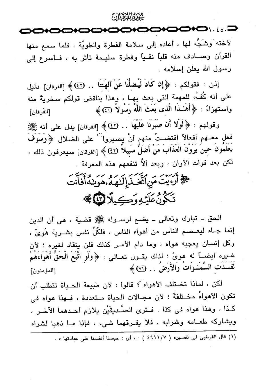 وقولهم: {لَوْلاَ أَن صَبْرَنَا عَلَيْهَا} [الفرقان: 42] يدل على أنه صَلَّى اللَّهُ عَلَيْهِ وَسَلَّم َ فعل معهم أفعالاً اقتضتْ منهم أنْ يصبروا على الضلال {وَسَوْفَ يَعْلَمُونَ حِينَ يَرَوْنَ العذاب مَنْ أَضَلُّ سَبِيلاً} [الفرقان: 42] سيعرفون ذلك، لكن بعد فوات الأوان، وبعد ألاَّ تنفعهم هذه المعرفة.