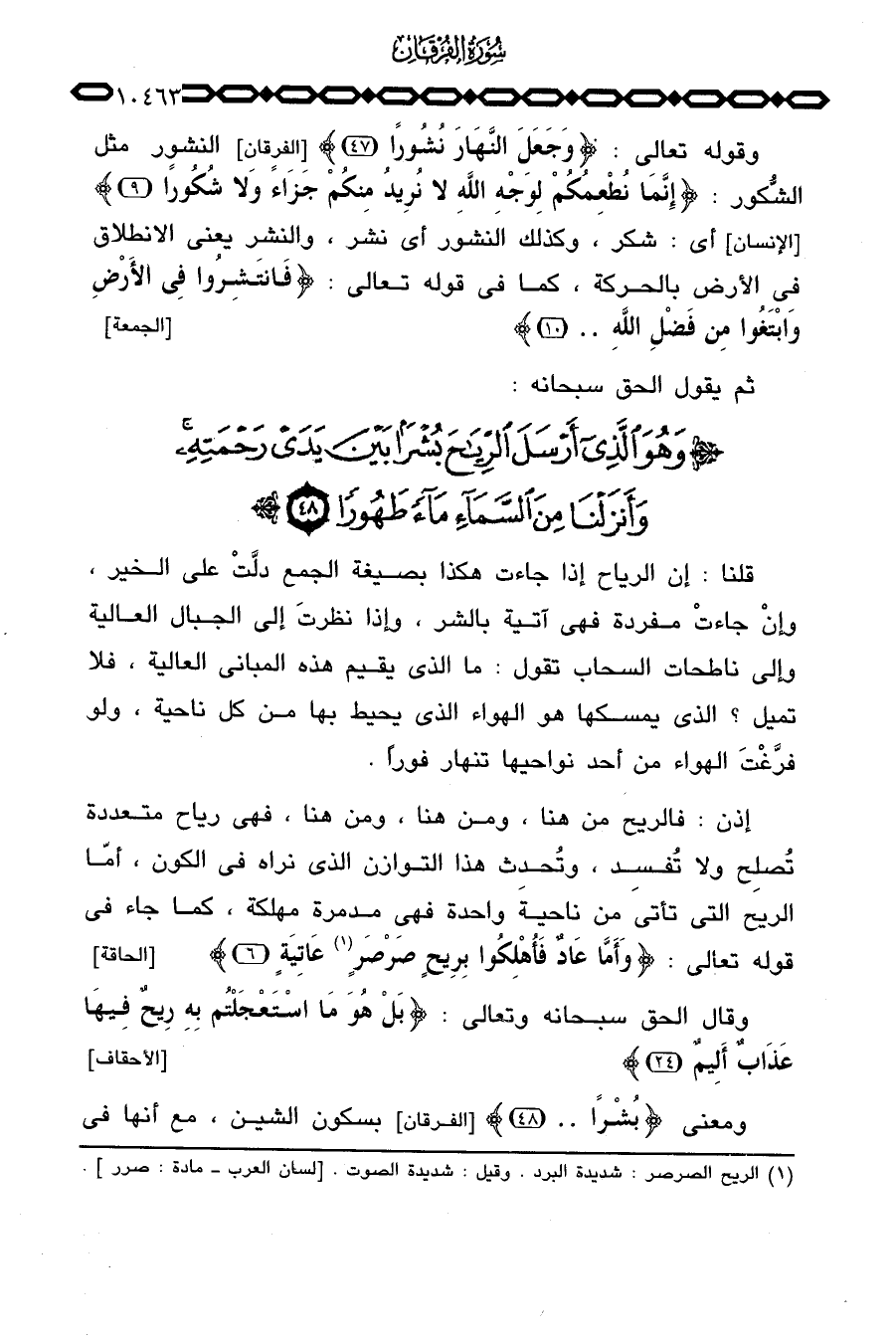 وقوله تعالى: {وَجَعَلَ النهار نُشُوراً} [الفرقان: 47] النشور مثل الشُّكور: {إِنَّمَا نُطْعِمُكُمْ لِوَجْهِ الله لاَ نُرِيدُ مِنكُمْ جَزَآءً وَلاَ شُكُوراً} [الإنسان: 9] أي: شكر، وكذلك النشور أي نشر، والنشر يعني الانطلاق في الأرض بالحركة، كما في قوله تعالى: {فانتشروا فِي الأرض وابتغوا مِن فَضْلِ الله} [الجمعة: 10] .