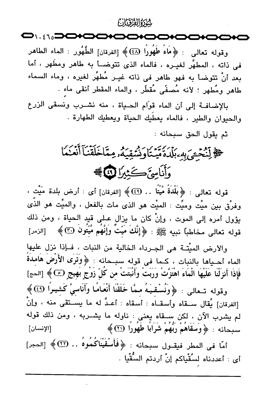 قوله تعالى: {بَلْدَةً مَّيْتاً} [الفرقان: 49] أي: أرض بلدة مَيْت، وفرْق بين ميْت وميِّت: الميْت هو الذي مات بالفعل، والميِّت هو الذِّي يؤول أمره إلى الموت، وإنْ كان ما يزال على قيد الحياة، ومن ذلك قوله تعالى مخاطباً نبيه صَلَّى اللَّهُ عَلَيْهِ وَسَلَّم َ: {إِنَّكَ مَيِّتٌ وَإِنَّهُمْ مَّيِّتُونَ} [الزمر: 30] .