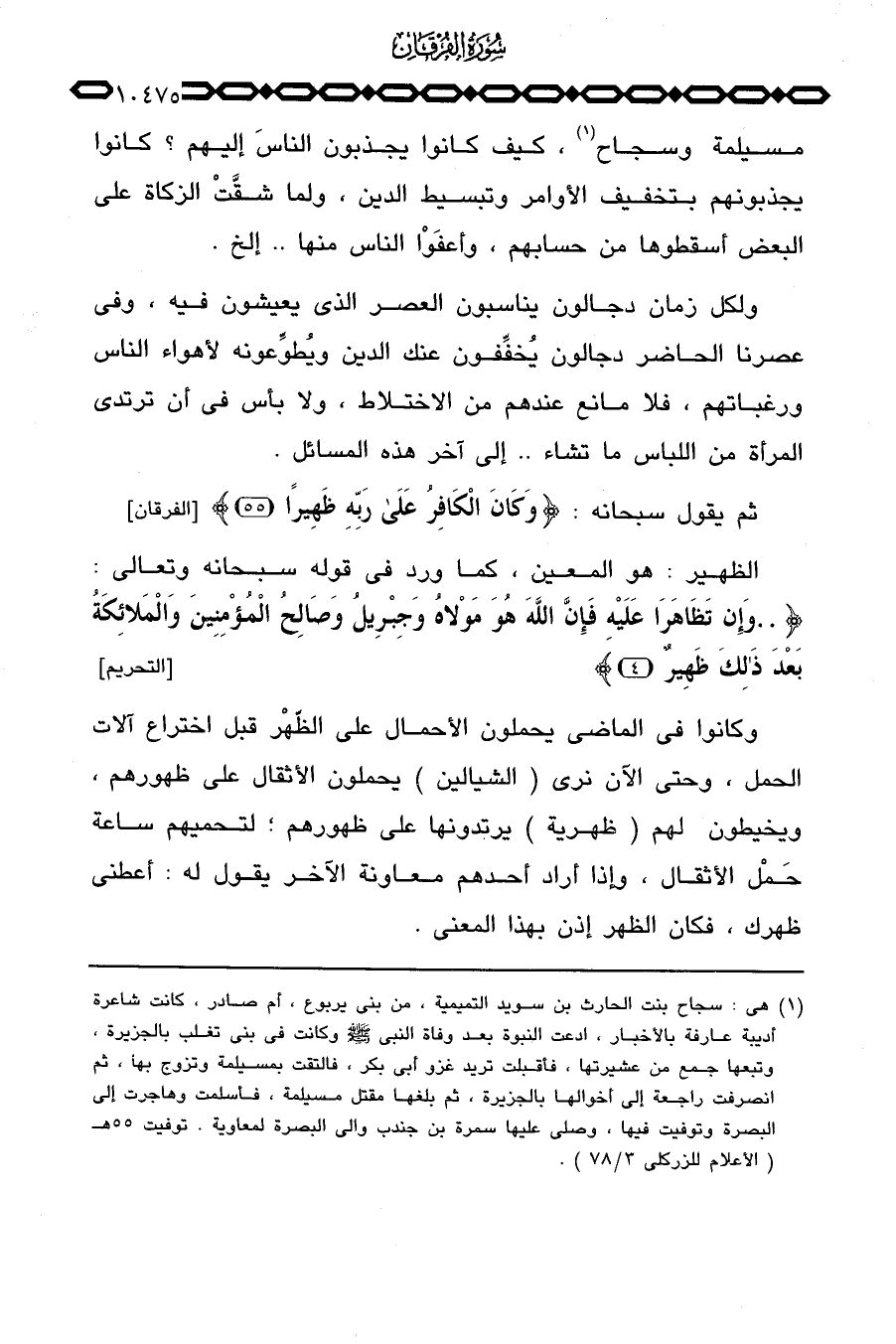 ثم يقول سبحانه: {وَكَانَ الكافر على رَبِّهِ ظَهِيراً} [الفرقان: 55] .