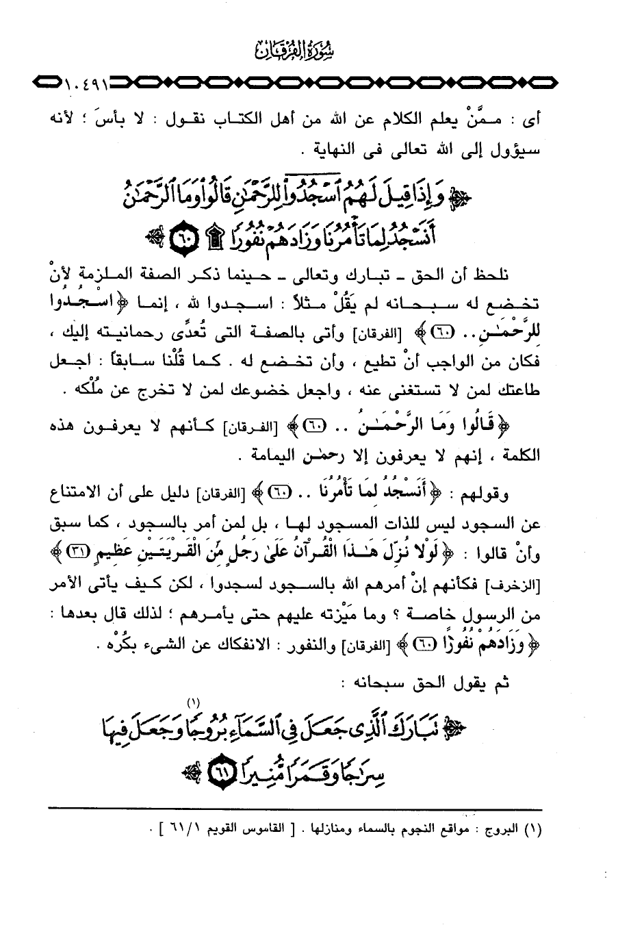 نلحظ أن الحق تبارك وتعالى حينما ذكر الصفة الملزمة لأنْ تخضع له سبحانه لم يَقُلْ مثلاً: اسجدوا لله، إنما {اسجدوا للرحمن} [الفرقان: 60] وأتى بالصفة التي تُعدِّي رحمانيته إليك، فكان من الواجب أنْ تطيع، وأن تخضع له. كما قُلْنا سابقاً: اجعل طاعتك لمن لا تستغني عنه، واجعل خضوعك لمن لا تخرج عن مُلْكه.