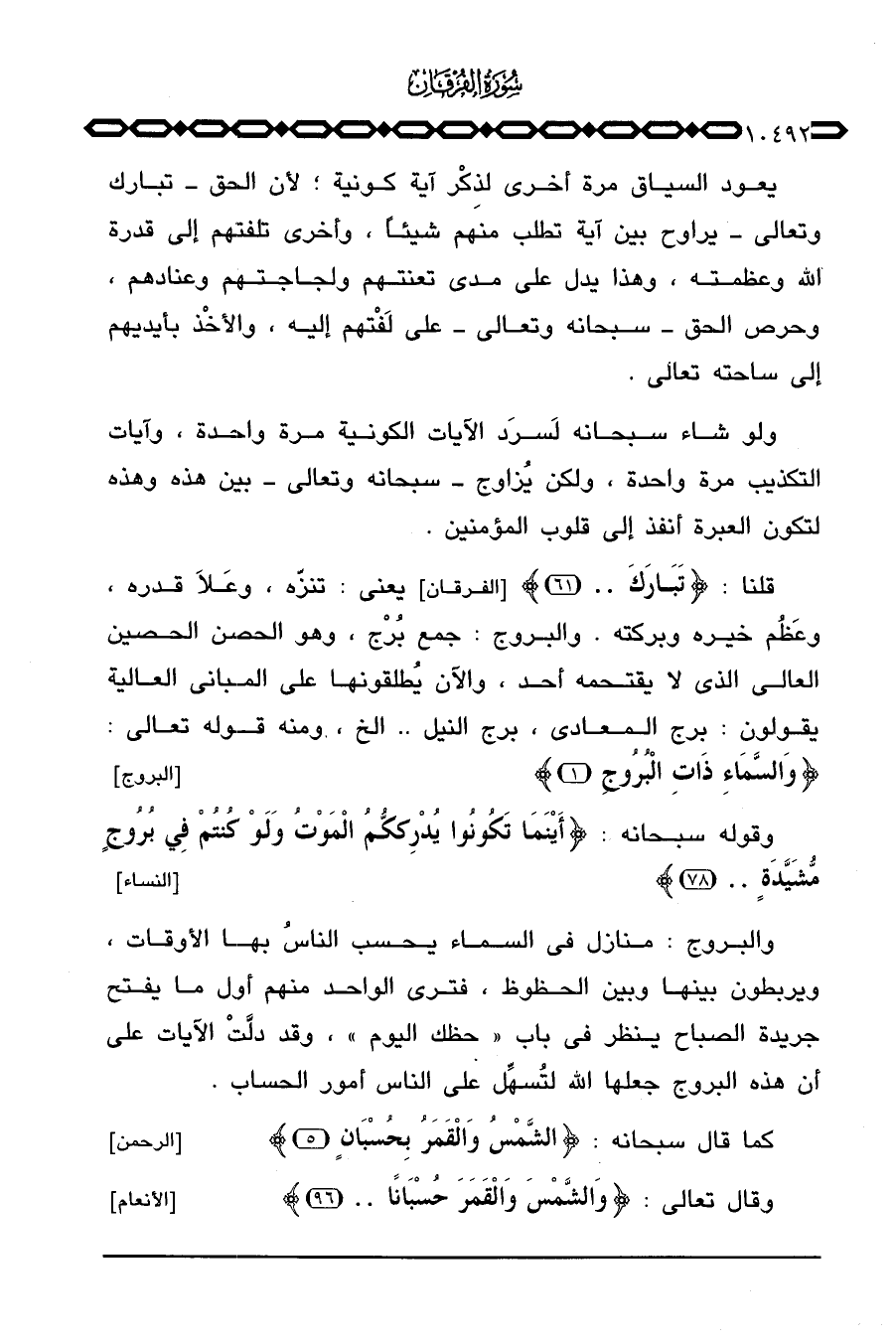 قلنا: {تَبَارَكَ} [الفرقان: 61] يعني: تنزّه، وعَلاّ قدره، وعَظُم خيره وبركته. والبروج: جمع بُرْج، وهو الحصن الحصين العالي الذي لا يقتحمه أحد، والآن يُطلقونها على المباني العالية يقولون: برج المعادي، برج النيل. . الخ، ومنه قوله تعالى: {والسمآء ذَاتِ البروج} [البروج: 1] .