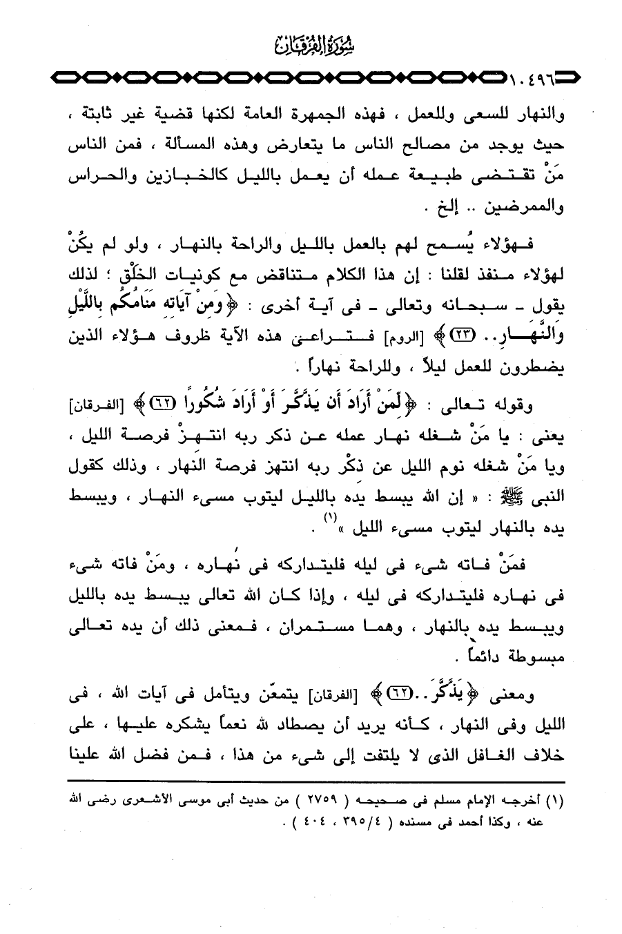 وقوله تعالى: {لِّمَنْ أَرَادَ أَن يَذَّكَّرَ أَوْ أَرَادَ شُكُوراً} [الفرقان: 62] يعني: يا مَنْ شغله نهار عمله عن ذكر ربه انتهِزْ فرصة الليل، ويا مَنْ شغله نوم الليل عن ذِكْر ربه انتهز فرضة النهار، وذلك كقول النبي صَلَّى اللَّهُ عَلَيْهِ وَسَلَّم َ: «إن الله يبسط يده بالليل ليتوب مسيء النهار، ويبسط يده بالنهار ليتوب مسيء الليل» .