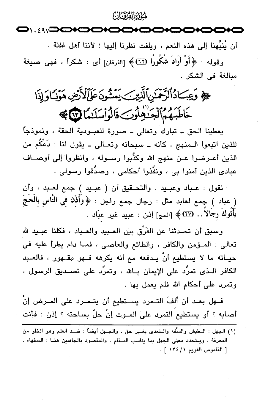 يعطينا الحق تبارك وتعالى صورة للعبودية الحقة، ونموذجاً للذين اتبعوا المنهج، كأنه سبحانه وتعالى يقول لنا: دَعْكُم من الذين أعرضوا عن منهج الله وكذَّبوا رسوله، وانظروا إلى أوصاف عبادي الذين أمنوا بي، ونفَّذوا أحكامي، وصدَّقوا رسولي.