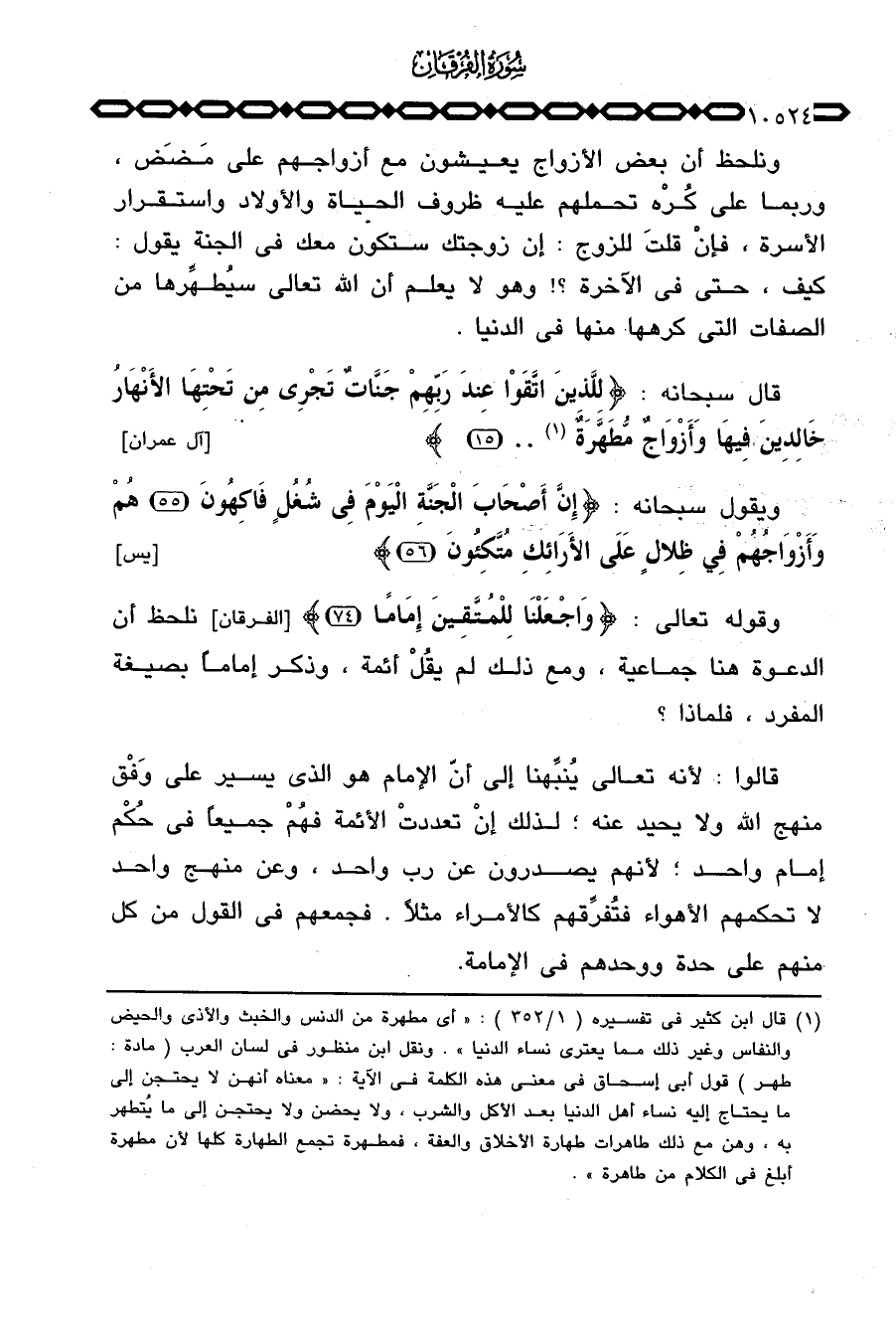 قال سبحانه: {لِلَّذِينَ اتقوا عِندَ رَبِّهِمْ جَنَّاتٌ تَجْرِي مِن تَحْتِهَا الأنهار خَالِدِينَ فِيهَا وَأَزْوَاجٌ مُّطَهَّرَةٌ} [آل عمران: 15] .