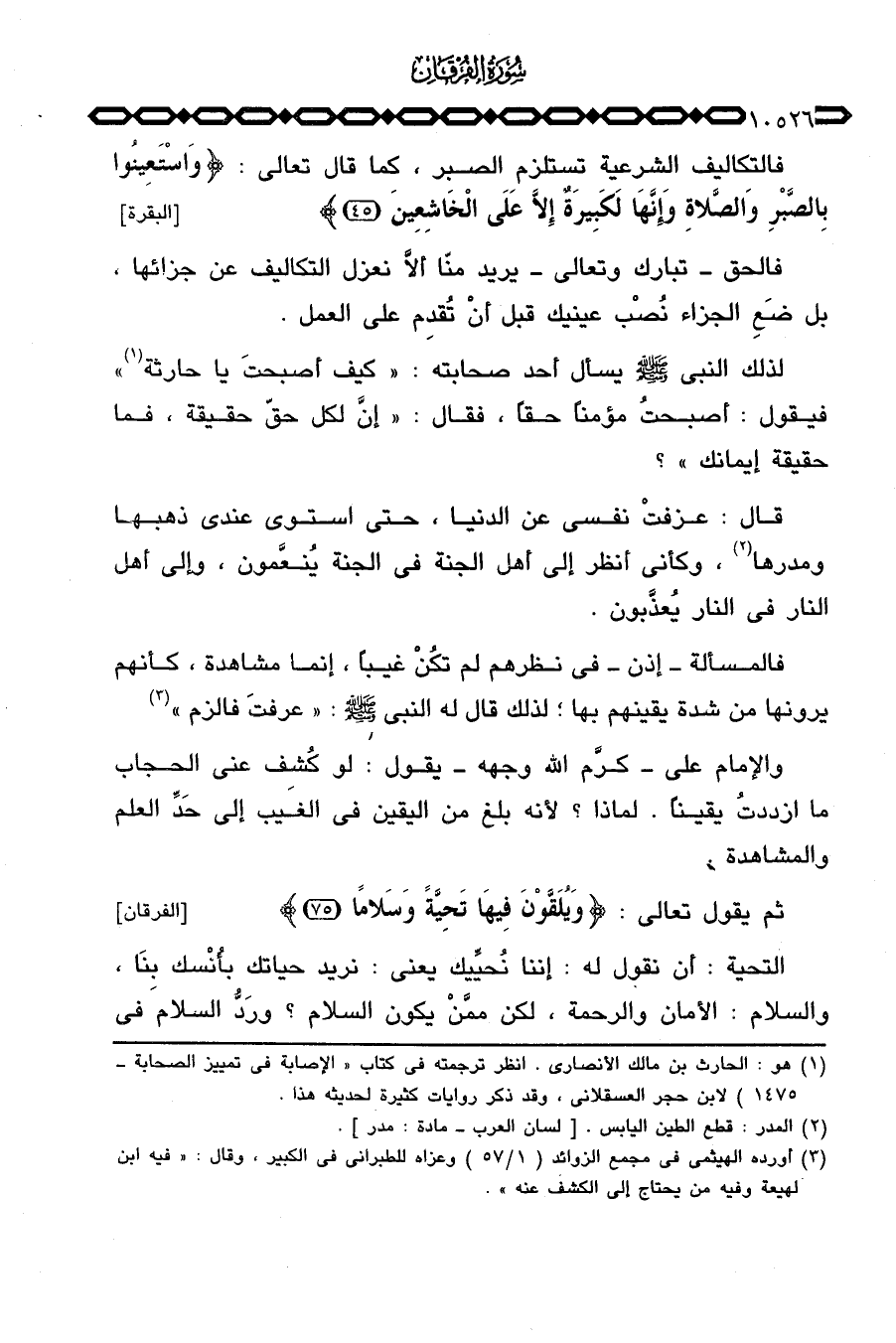لذلك النبي صَلَّى اللَّهُ عَلَيْهِ وَسَلَّم َ يسأل أحد صحابته: «كيف أصبحتَ يا حارثة» فيقول: أصبحتُ مؤمناً حقاً، فقال: «إنَّ لكل حقّ حقيقة، فما حقيقة إيمانك» .
