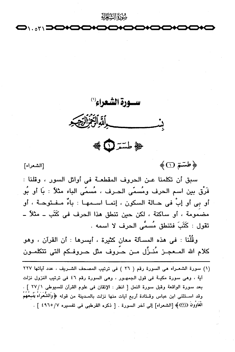 وقُلْنا: في هذه المسألة معانٍ كثيرة، أيسرها: أن القرآن، وهو كلام الله المعجز مُنزَّل من حروف مثل حروفكم التي تتكلمون