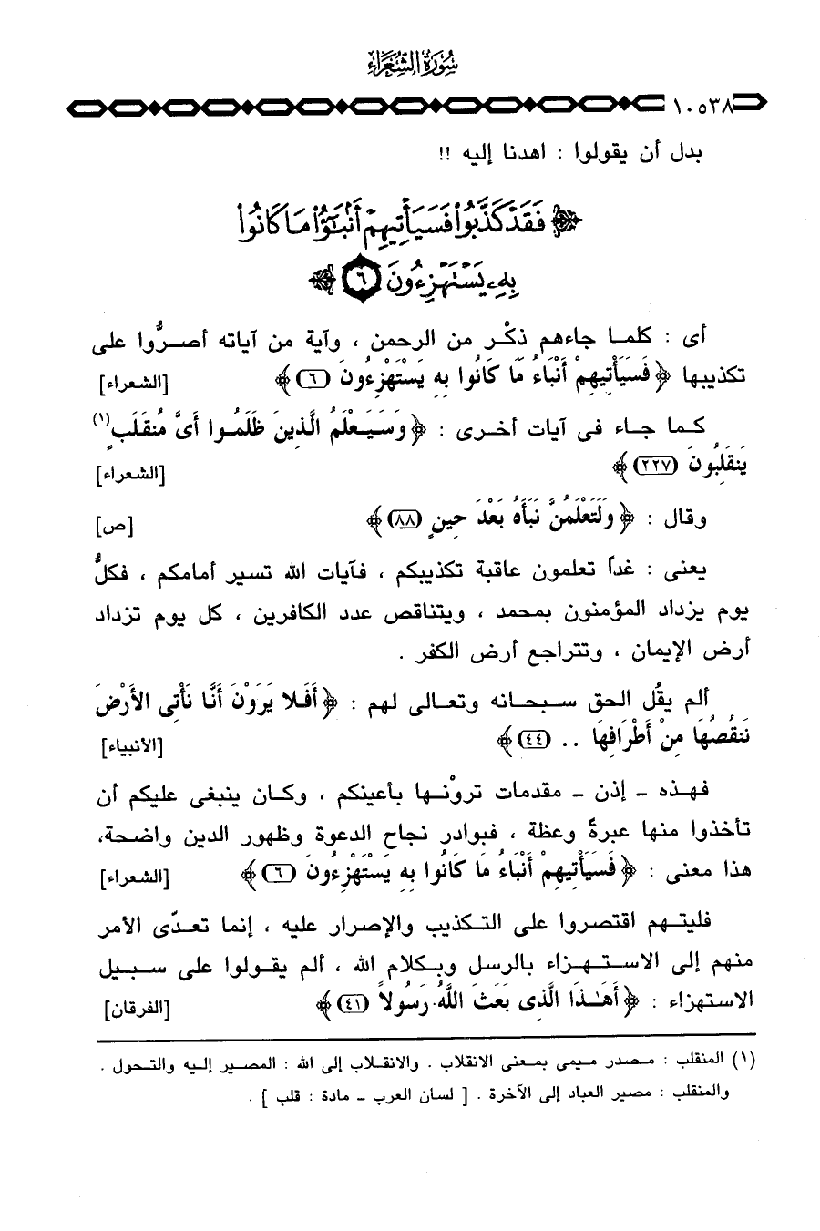 فهذه إذن مقدمات تروْنها بأعينكم، وكان ينبغي عليكم أن تأخذوا منها عبرةً وعظة، فبوادر نجاح الدعوة وظهور الدين واضحة، هذا معنى: {فَسَيَأْتِيهِمْ أَنبَاءُ مَا كَانُواْ بِهِ يَسْتَهْزِئُونَ} [الشعراء: 6] .