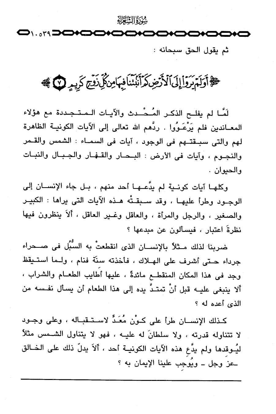 ضربنا لذلك مثلاً بالإنسان الذي انقطعتْ به السُّبُل في صحراء جرداء حتى أشرف على الهلاك، فأخذته سِنَة فنام، ولما استيقظ وجد في هذا المكان المنقطع مائدةً، عليها أطايب الطعام والشراب، أَلا ينبغي عليه قبل أنْ تمتدَّ يده إلى هذا الطعام أن يسأل نفسه من الذي أعده له؟