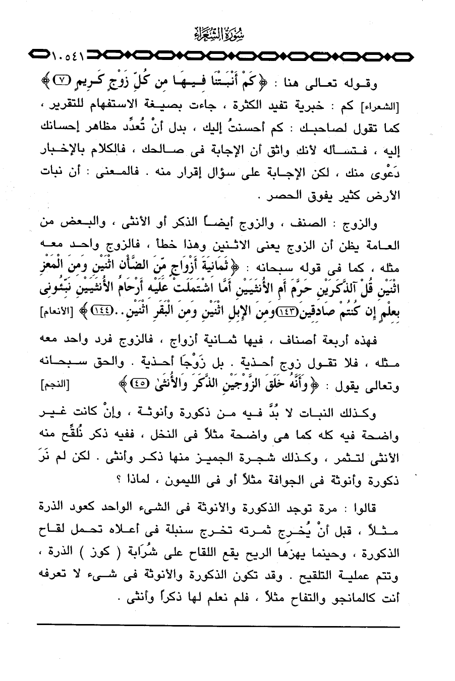 وكذلك النبات لا بُدَّ فيه من ذكورة وأنوثة، وإنْ كانت غير واضحة فيه كله كما هي واضحة مثلاً في النخل، ففيه ذكر نُلقِّح منه الأنثى لتثمر، وكذلك شجرة الجميز منها ذكر وأنثى. لكن لم نَرَ ذكورة وأنوثة في الجوافة مثلاً أو في الليمون، لماذا؟