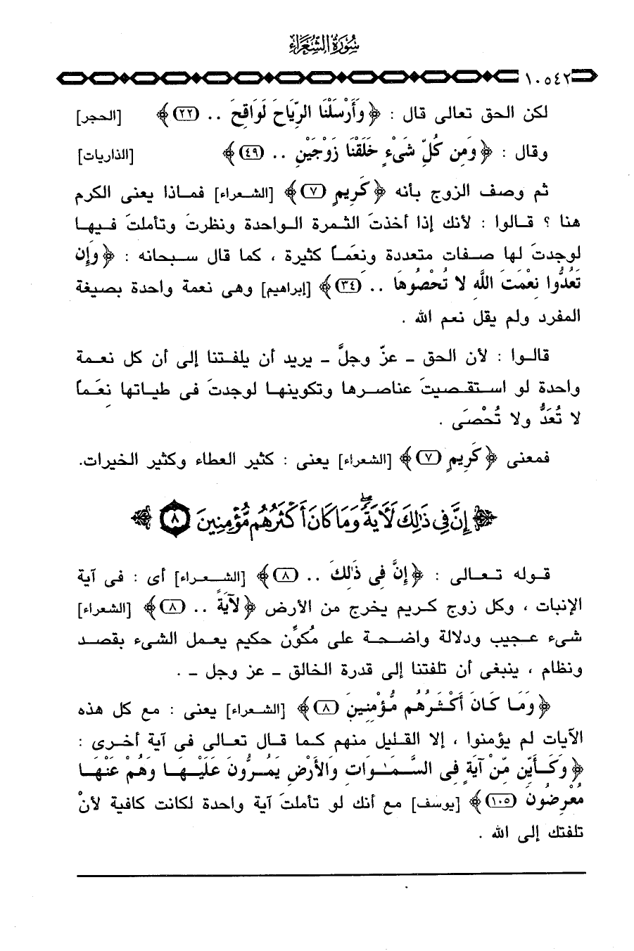 قوله تعالى: {إِنَّ فِي ذَلِكَ} [الشعراء: 8] أي: في آية الإنبات، وكل زوج كريم يخرج من الأرض {لآيَةً} [الشعراء: 8] شيء عجيب ودلالة واضحة على مُكوِّن حكيم يعمل الشيء بقصد ونظام، ينبغي أن تلفتنا إلى قدرة الخالق عَزَّ وَجَلَّ.