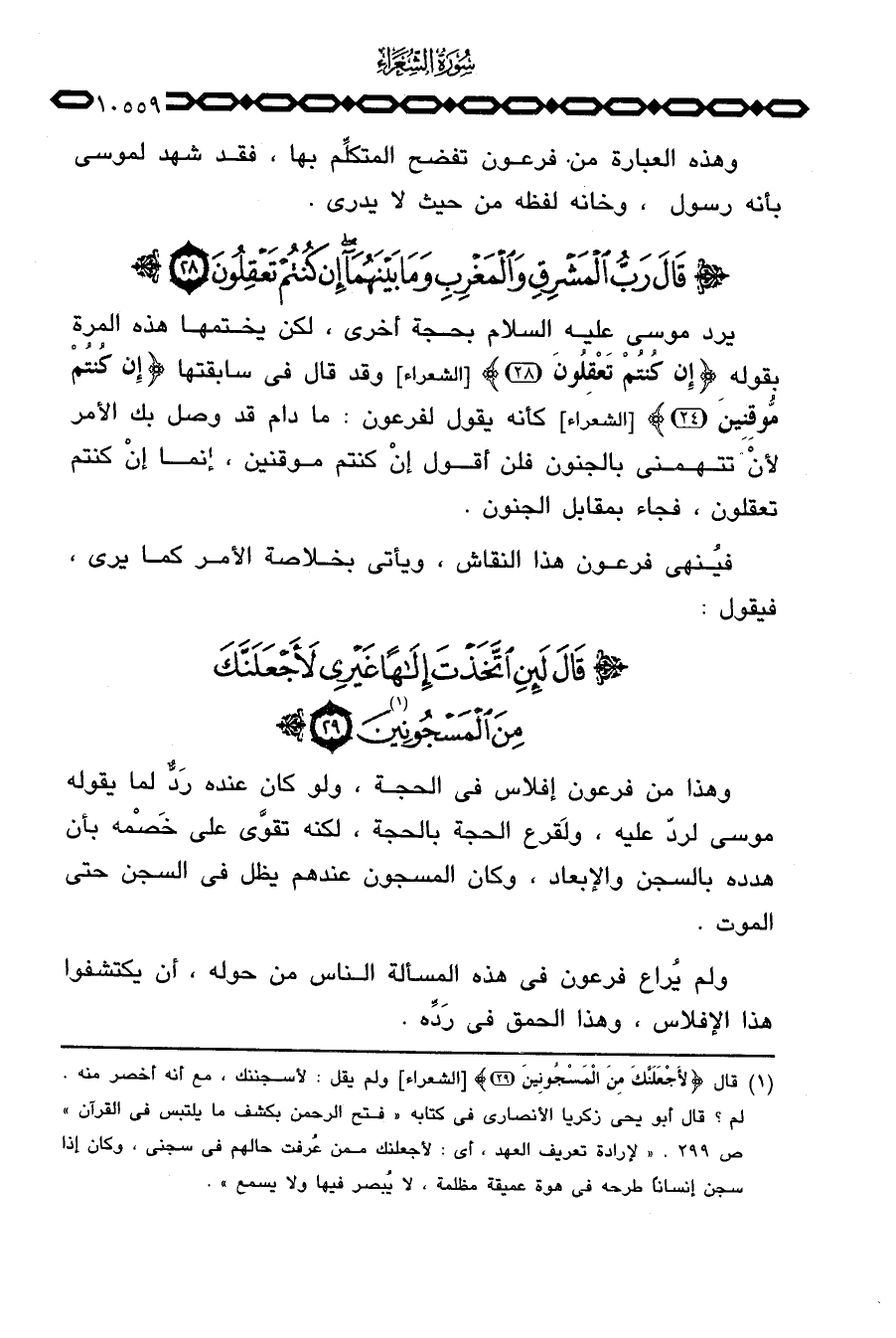 يرد موسى عليه السلام بحجة أخرى، لكن يختمها هذه المرة بقوله: {إِن كُنتُمْ تَعْقِلُونَ} [الشعراء: 28] وقد قال في سابقتها {إِن كُنتُمْ مُّوقِنِينَ} [الشعراء: 24] كأنه يقول لفرعون: ما دام قد وصل بك الأمر لأنْ تتهمني بالجنون فلن أقول إنْ كنتم موقنين، إنما إنْ كنتم تعقلون، فجاء بمقابل الجنون.