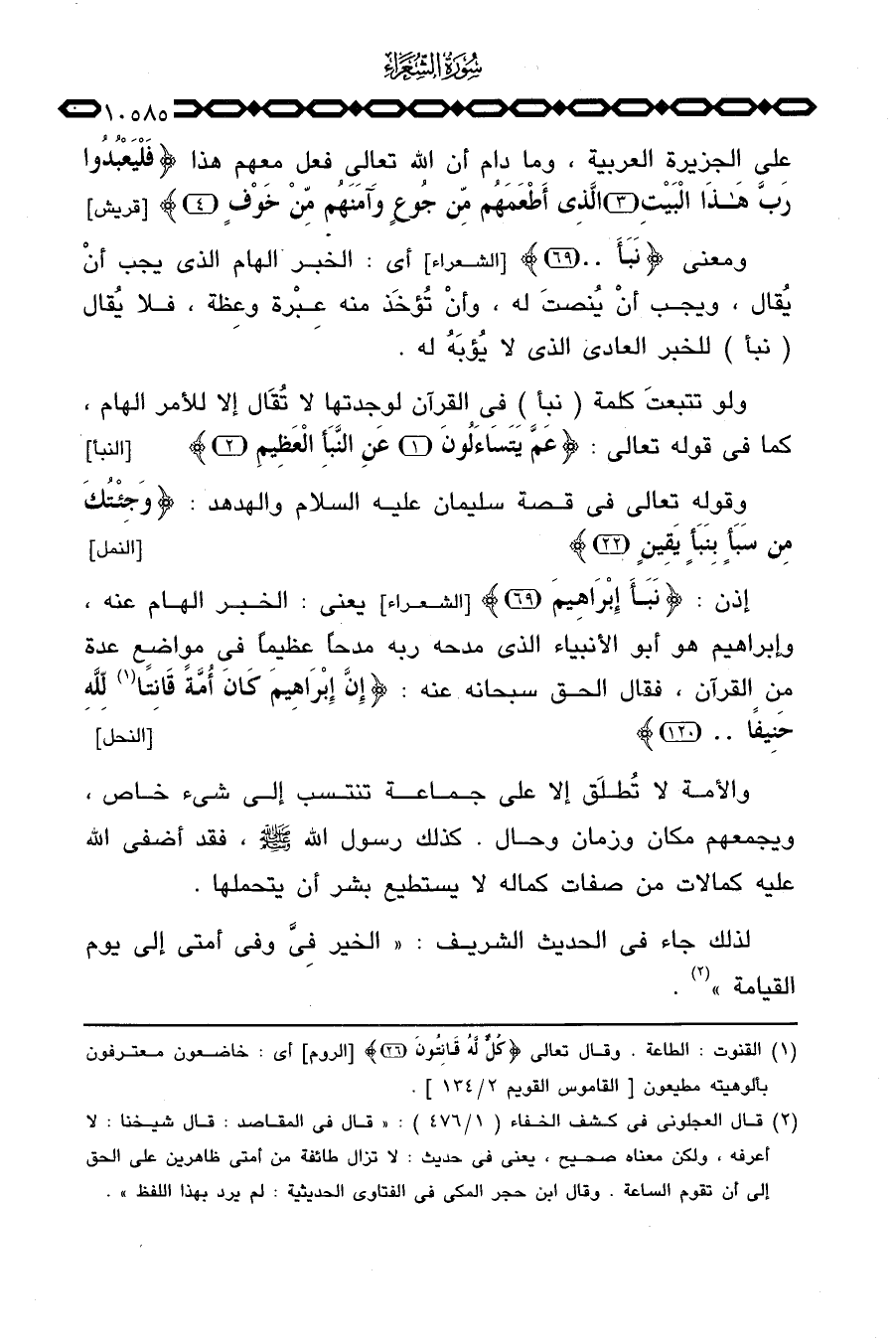 والأمة لا تُطلَق إلا على جماعة تنتسب إلى شيء خاص، ويجمعهم مكان وزمان وحال. كذلك رسول الله صَلَّى اللَّهُ عَلَيْهِ وَسَلَّم َ، فقد أضفى الله عليه كمالات من صفات كماله لا يستطيع بشر أن يتحملها.