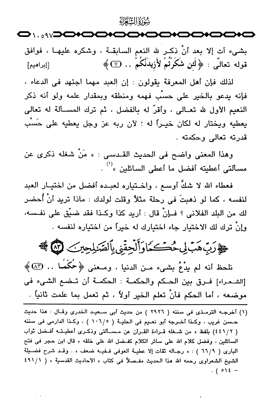 نلحظ أنه لم يدْعُ بشيء من الدنيا، ومعنى {حُكْماً} [الشعراء: 83] فرق بين الحكم والحكمة: الحكمة أن تضع الشيء في موضعه، أما الحكم فأنْ تعلم الخير أولاً، ثم تعمل بما علمت ثانياً.