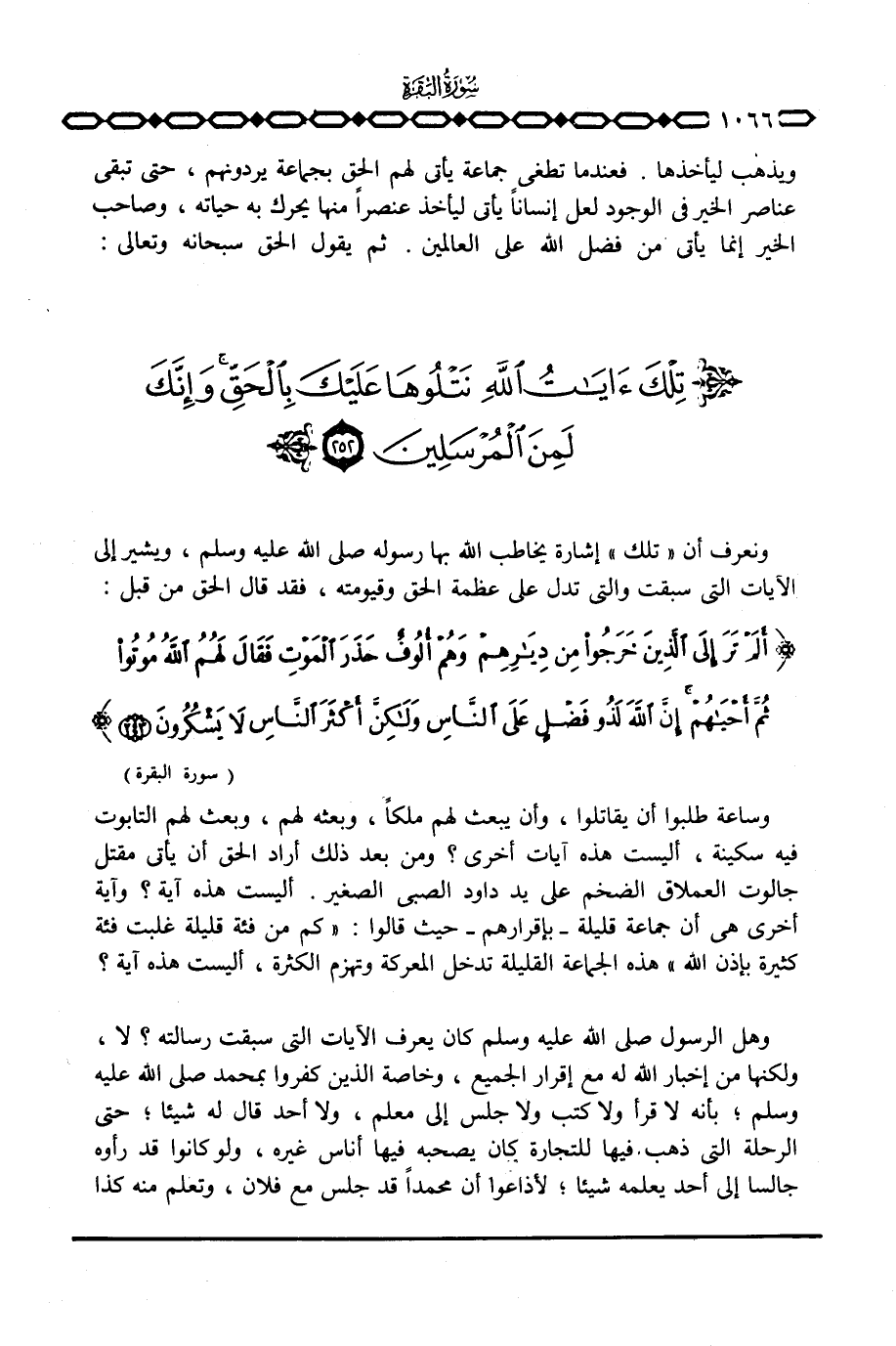 ويذهب ليأخذها. فعندما تطغى جماعة يأتي لهم الحق بجماعة يردونهم، حتى تبقى عناصر الخير في الوجود لعل إنساناً يأتي ليأخذ عنصراً منها يحرك به حياته، وصاحب الخير إنما يأتي من فضل الله على العالمين. ثم يقول الحق سبحانه وتعالى: {تِلْكَ آيَاتُ الله نَتْلُوهَا عَلَيْكَ بالحق وَإِنَّكَ لَمِنَ المرسلين}