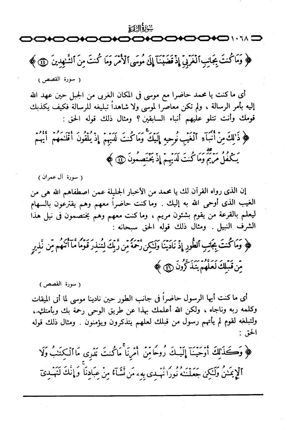 {وَمَا كُنتَ بِجَانِبِ الغربي إِذْ قَضَيْنَآ إلى مُوسَى الأمر وَمَا كنتَ مِنَ الشاهدين} [القصص: 44]